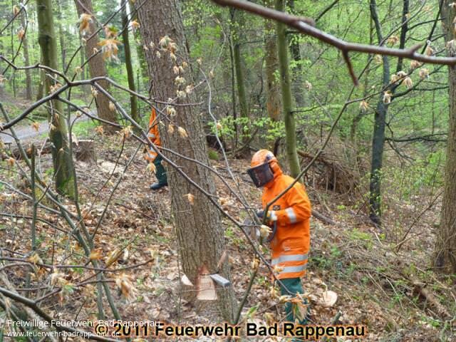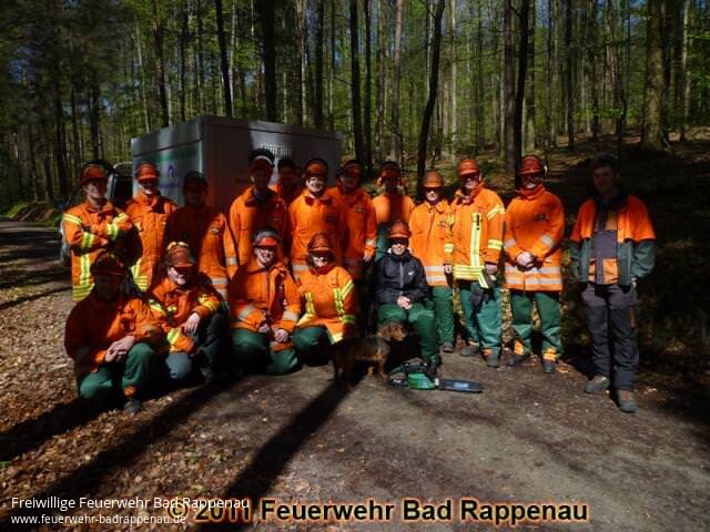 …so schallte es am vergangenen Dienstag immer wieder durch den Odenwald.Verursacher waren die Kameradinnen und Kameraden der Feuerwehr Bad Rappenau (der Abteilungen Babstadt, Bad Rappenau, Bonfeld, Fürfeld, Obergimpern und Treschklingen), welche an einem Kettensägen-Grundlehrgang des Forstamtes Schwarzach teilnahmen.An zwei Tagen erlernten die Kettensägen-Neulinge in Theorie und Praxis, wie man einen Baum fachmännisch fällt.Im theoretischen Unterricht wurde den Teilnehmer alles über Unfallverhütung, die Kettensäge und ihre Wartung beigebracht.Am zweiten Tage konnten sie dann das erlernte theoretische Wissen über Fälltechniken, Entastungstechniken und Fehlersuche an der Motorsäge im Wald praktisch umsetzen.Bild1: Baum fällt…Bild2: Gruppenbild – Teilnehmer der Feuerwehr Bad Rappenau