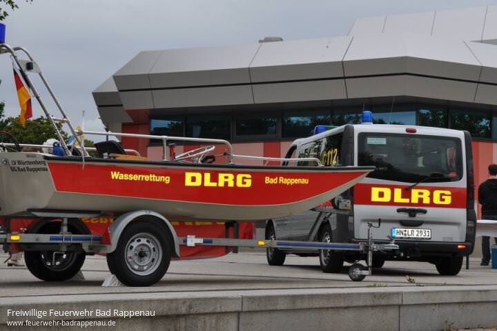 Am 24.07.2011 feierte die DLRG Ortsgruppe Bad Rappenau mit einem Festakt und anschließender Bootstaufe des Motorrettungsbootes im Kurpark ihr Jubiläum.Der Vorsitzende begrüßte die anwesenden Gäste und Mitglieder und gab einen kurzen Rückblick auf die vergangenen Jahre.Er bedankte sich für die Unterstützung durch den Vorstand, die aktiven Mitglieder, Förderer und die Stadt Bad Rappenau, dank deren Hilfe die Ortsgruppe nun auch eine Unterkunft für Boot und Fahrzeug hat.Auch Oberbürgermeister Hans Heribert Blättgen überbrachte in Anwesenheit einiger Gemeinderatsmitglieder und der Feuerwehr Glückwünsche und eine Spende der Stadt.Er bedankte sich für das Engagement der DLRG im Ort und den Eifer mit dem Schwimmausbildung und Wasserrettung auf- und ausgebaut werden.Im Rahmen der Veranstaltung wurden der langjährige Kassenwart Walter Geml mit dem Verdienstabzeichen der DLRG in Silber und der Vorsitzender Holger Schmidt mit dem Verdienstabzeichen in Bronze für ihr ehrenamtliches Engagement durch den Landesverbandspräsidenten der DLRG Bruno Bietz geehrt.Nach der Taufe des Bootes auf den Namen Bad Rappenau gab es noch einen kleinen Imbiss und alle hatten Gelegenheit das Boot, und das auch das neue Fahrzeug, in Augenschein zu nehmen.Am Nachmittag gab es noch Gelegenheit das frisch getaufte Boot in seinem neuen Heimatrevier, dem Neckar bei Heinsheim, zu fahren.