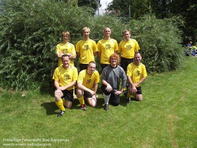 Die Betriebssportgemeinschaft (BSG) der Stadt Bad Rappenau feiert in diesem Jahr ihr 40-jähriges Bestehen. Aus diesem Anlass fand in Zusammenarbeit mit dem TSV Fürfeld im Rahmen der Sportwoche am 23.07.11 ein Jubiläumsturnier statt. Neben verschiedenen Mannschaften von befreundeten BSG anderer Stadtverwaltungen beteiligte sich auch die Sportgruppe der Freiwilligen Feuerwehr Bad Rappenau erstmals an einem Turnier. Die 8 teilnehmenden Mannschaften waren auf 2 Gruppen verteilt und bestritten von 10:00 bis 13:00 Uhr die Vorrundenspiele. Die Mannschaft um Spielführer Felix Mann konnte sich allerdings nur für das Spiel um Platz 7 qualifizieren. Die gesamte Mannschaft mit den weiteren Spielern Tobias Mayer, Matthias Borth, Benjamin Senius (alle Fürfeld), Frank Rieth (Bonfeld), Sebastian Heisig, Jens Fahrbach (beide Bad Rappenau) und Dennis Werner (Obergimpern) konnte aber auch hier keinen Sieg verbuchen. So stand das sportliche Erlebnis und das kameradschaftliche Miteinander an diesem Tag im Vordergrund. Die Sportgruppe der Freiwilligen Feuerwehr wird sich weiterentwickeln. So ist mittelfristig geplant in einer städtischen Sporthalle oder im Sportraum einer Bad Rappenauer Klinik regelmäßig Sporttermine für die interessierten Kameraden aus allen Abteilungen anzubieten. Diese Termine können durchaus mit einem Lauftreff oder mit einer Radtour abgerundet werden und sollen zum Erhalt bzw. der Verbesserung der körperlichen Fitness, ganz im Sinne des Programms fit-for-fire-fighting, beitragen. Weitere Informationen hierzu unter https://www.fit-for-fire-fighting.com