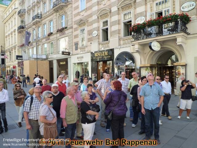In den frühen Morgenstunden am Freitag startete auch dieses Jahr wieder der Feuerwehrausflug der Abt. Bad Rappenau.Die Fahrt führte vorbei an Nürnberg in Richtung Passau – Linz – Wien. Nahe Regensburg wurde eine kurze Rast mit Brezeln und Kaffee eingelegt.Beim Eintreffen zur Mittagszeit in Passau, konnte man bei herrlichem Sonnenschein an der Donau entlang spazieren oder in einer der Gaststätten bayrische Spezialitäten genießen.Der Samstag stand ganz im Zeichen der Stadtgeschichte. Beim Anfahren der verschiedenen Denkmäler, Schlösser und historischen Kirchen, erzählte die Stadtführerin so manche Anekdote aus der Vergangenheit.Der erste Stop war beim Schloss "Oberes Belvedere". Hier konnten wir einen phantastischen Blick auf das "Untere Belvedere" und das Panorama von Wien genießen.Ein Rundgang durch die Wiener Innenstadt ging vorbei am Hotel Sacher, dem Stephansdom, der Dreifaltigkeitssäule und durch die Hofburg mit der Spanischen Hofreitschule.Nach der Mittagspause im Wiener Prater führte uns die Stadtrundfahrt vorbei an dem Hundertwasserhaus zu dem schönen Schloss Schönbrunn. Ein gemütlicher Ausklang im Heurigen vollendete den erlebnisreichen Tag.Der Sonntag konnte ganz nach eigenen Wünschen und Interessen gestaltet werden. Bei herrlichem Wetter nutzten einige die Zeit um die Wiener Innenstadt um den Stephansdom zu erkunden oder eine Schifffahrt auf der Donau zu erleben. Andere zog es hinaus zum Schloss Schönbrunn mit seinen weitläufigen Parkanlagen und dem Tierpark.Nach einem reichhaltigen Frühstück trat die Gruppe am Montag wieder die Heimreise an. Die Fahrt führte uns durch die schöne Wachau entlang der Donau umringt von Weinbergen. Eine Einkehr zur Mittagszeit in einem urigen Biergarten und ein Stopp zum Kaffee trinken bei einer Pralinenfabrik versüßte uns die Heimfahrt.Trotz einiger kleiner Staus verlief die Rückreise über die Autobahn reibungslos und so kamen alle gegen 21 Uhr erschöpft aber glücklich wieder in Bad Rappenau an.