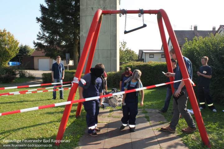 Bei Schönem Wetter fand unser 20-jähriges Jubiläum am 2. Oktober in der Brunnenberghalle statt. Hier trafen sich um 9:30 Uhr 8 Jugendfeuerwehren, davon 5 Abt. von Bad Rappenau sowie Siegelsbach, Schwaigern und Kirchardt zu einer Dorfrallye. Die Jugendlichen mussten auf ihrer Tour durch Fürfeld 31 Fragen beantworten und an 7 Stationen ihre Geschicklichkeit unter Beweis stellen. So mussten die Jungs und Mädels beispielsweise innerhalb einer bestimmten Zeit mit Hilfe eines Eimers Wasser in einen B-Schlauch füllen, der durch eine Leiter gefädelt war, um möglichst viel Wasser auf der anderen Seite des Schlauches zu erhalten. Gegen 14.00 Uhr war die letzte Mannschaft von der Dorfrallye zurück. Bei der Siegerehrung erhielten die ersten 3 Mannschaften einen Pokal, die anderen einen Trostpreis. Diese wurden von der Firma Jassmann Modellbau gesponsert. Hierfür an dieser Stelle ein herzlicher Dank. Den 1. Platz belegte die Jugendfeuerwehr Bad Rappenau Abt. Bad Rappenau. Dicht gefolgt auf dem 2. Platz von der Jugendfeuerwehr Kirchardt. Den 3. Platz hat sich die Jugendfeuerwehr Bad Rappenau Abt. Treschklingen / Babstadt erarbeitet.Nach der Siegerehrung führte Herr Beisswänger von der Werksfeuerwehr Vogelsang in Haßmersheim vor, wie sich Spraydosen bei Wärme verhalten. Anschließend durften die Zuschauer ihr eigenes Können mit einem Feuerlöscher unter Beweis stellen. Zum finalen Abschluss der Feuerlöscherübung wurde noch eine Fettexplosion vorgeführt. Für die tollen Vorführungen möchten wir Herrn Beisswänger bzw. der Fa. Vogelsang an dieser Stellen ebenfalls unseren Dank aussprechen. Zwischen den Vorführungen absolvierten die Jugendlichen der Jugendfeuerwehr Bad Rappenau, Abt. Fürfeld Schauübungen und zeigten unter anderem einen 3-teiligen Löschangriff. Den ganzen Tag über sorgten die Kameraden der Einsatzabteilung Fürfeld für das leibliche Wohl. Mütter und Frauen unserer Kameraden versorgten die Gäste mit Kaffee, Kuchen und Waffeln. Vielen Dank an das gesamte Team, welches uns tatkräftig unterstützt hat. Sehr begehrt war auch unsere Tombola, die ein guter Erfolg war. Dafür möchten wir uns bei allen Sponsoren für die reichlichen Sach- und Geldspenden bedanken. Es haben gespendet:1000 Dinge Bad Rappenau, Allianz Versicherungen, Audi BKK, Autohaus Jung, 24-Express Subway Autohof Bad Rappenau, Bäckerei Feil, Bäckerei Müller, XXXL Bierstorfer, Bauunternehmung Böpple, Christoph Steinhoff Versicherungen, Déesse Kosmetik Brezina, Buchhandlung Eckert, Raumausstattung Englert, Fahrschule Kraft und Keller, Gärtnerei Maisenhölder, Gasthaus Traube, Happy Shopping, H. P. Schwerlasttechnik, Indrink, Intra Arbeitsschutz, Kurt Wimmer und Nicolai Hubmann Jäger, Modellbau Jassmann, Kamm In Friseur, Kfz-Schneider – Nutzfahrzeuge, Metzgerei Klaus Billmann, Kreissparkasse Heilbronn, Schuhgeschäft Leopold, Losberger Zelte, Rolf Mayer Schwerlasttechnik, MC Donald Bad Rappenau, Tankstelle Heiko Neuweiler, Pausenstüble, Möbelmarkt Poco, Raiffeisenmarkt Eppingen, Elektrofachbetrieb Ralf Kümmerle, Flaschnerei Volker Reinhardt, Drogerie Rossmann, Markisen und Fenster Rüdinger, Kfz-Werkstatt Tremmel und die Volksbank Kraichgau.Wir möchten uns bei den zahlreichen Gästen recht herzlich für das rege Interesse bedanken.