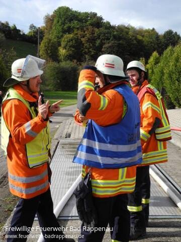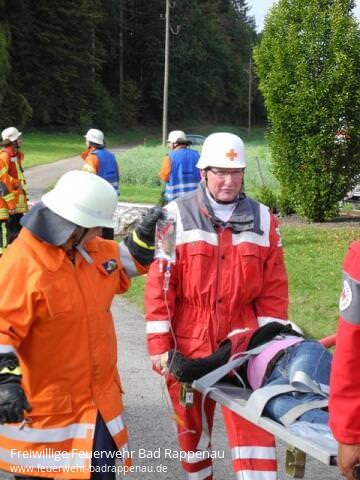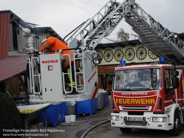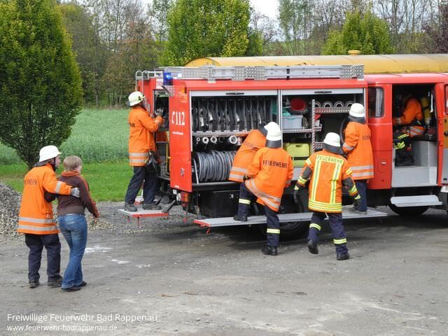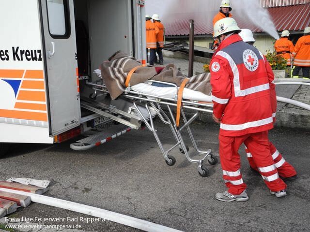 Dichter Rauch stieg am Samstagmittag aus der Scheune der Hausbrennerei Stettner in Wollenberg auf. Um 14.35 Uhr löste die Leitstelle Heilbronn Übungsalarm für die Abteilung Wollenberg aus.Brand in der Au 1, mehrere Personen vermisst so die Alarmmeldung.Schon auf der Anfahrt forderte Gruppenführeranwärter Matthias Bräuchle den Lösch- und Wasserförderungszug Bad Rappenau nach, so wie es auch die Alarm- und Ausrückeordnung vorsieht. Doch bis zum Eintreffen der nachgeforderten Kräfte vergeht viel Zeit, Zeit die jedoch unser Gruppenführer nicht hat, um eine ganze Reihe an Problemsituationen zu meistern. Beim Eintreffen an der Einsatzstelle wurde er gleich von einer unter Schock stehenden jungen Frau in Beschlag genommen, die ihm aber einige wichtige Informationen über den Standort der vermissten Personen geben konnte. Der Zugang zu den Personen war nur durch den Brandraum möglich.Schnell ordnete er dem unter Atemschutz ausgerüsteten Angriffstrupp eine Brandbekämpfung von innen an. Doch es kommt was kommen musste, der direkt am Anwesen befindliche Hydrant öffnete nicht. Auch hier reagierte Matthias Bräuchle außerordentlich ruhig und wies seine Mannschaft an, weitere 150m B-Schlauchleitung bis zum nächsten Hydranten zu verlegen. Zu diesem Zeitpunkt traf auch Matthias Kampp (Abteilungskommandant Heinsheim) mit dem Kommandowagen ein, und übernahm die Gesamteinsatzleitung. Die Drehleiter wurde gleich aus dem Bereitstellungsraum an die Einsatzstelle gefordert um ein Menschenrettung aus dem Obergeschoss der Scheune zu ermöglichen. Der Wasserförderungszug, der aus den zwei Löschfahrzeugen der Abteilung Obergimpern und Grombach sowie dem 1000m B-Schlauch fassenden Schlauchwagen besteht, wurde beauftragt eine weitere Wasserversorgung zur Einsatzstelle aufzubauen. Zwischenzeitlich war bekannt, dass sich sechs Kinder in der Scheune befinden. So entschloss sich Einsatzleiter Kampp die Mannschaft der Abt. Obergimpern direkt an den Einsatzort zu holen und diese mit einem weiteren Innenangriff zu beauftragen. Kind um Kind wurde mit den unterschiedlichsten Verletzungen (geschminkt vom DRK Obergimpern) aus dem engen verwinkelten Scheunengebäude über die Treppe gerettet und dem DRK Obergimpern übergeben. Ein Kind hatte so starke Rückenverletzungen, dass der Rettungsweg, in Absprache mit dem DRK und dem Notarzt, über den Treppenraum völlig ausgeschlossen wurde, und so die Mannschaft der Drehleiter ihr Können im engen Hof nochmals unter Beweis stellen musste. Nach einer starken Stunde vermeldete Einsatzleiter Kampp Übungsende.Nach den Aufräumarbeiten fand sich die gesamte Mannschaft im Gerätehaus Wollenberg ein. Nach einer kurzen Begrüßung durch Abteilungskommandant Harald Scholz und bestem Dank an alle teilnehmenden Kameradinnen und Kameraden, übergab dieser das Wort an Einsatzleiter Kampp. Dieser zeigte sich mit der Übung zufrieden. Das Übungsziel, die Absprache in Führungsebene wie auch die kameradschaftliche Zusammenarbeit aller Abteilungen wurden erfüllt, und bedankte sich für die Einladung nach Wollenberg. Auch Gesamtkommandant Felix Mann, der zusammen mit Axel Klumbach als Übungsbeobachter an der Übung teilnahm, bedankte sich bei allen Abteilungen für die gute Zusammenarbeit, und gab noch einige Tipps und Verbesserungsvorschläge in der Handhabung von Atemschutzgeräten. Nach dieser kurzen Nachbesprechung konnte man in den gemütlichen Teil übergehen.Andrea Baz und Angelika Lange hatten wieder ein leckeres Essen organisiert, Thomas Brenner für ausreichend Getränke gesorgt, so dass der Übungstag einen kameradschaftlichen Ausklang im Gerätehaus Wollenberg nehmen konnte. Die Abteilung Wollenberg bedankt sich herzlich bei:Familie Stettner für die Bereitstellung der Übungsmöglichkeit, den Kindern für das Übernehmen der Statistenrolle, bei dem DRK Ortsverband Obergimpern, der Abt. Obergimpern, Abt. Grombach, Abt. Bad Rappenau sowie dem gesamten Führungspersonal für Hilfestellung und Mitarbeit bei der Übungsvorbereitung.