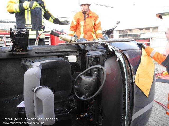 Bei der Feuerwehr Bad Rappenau stand vor kurzer Zeit die Ersatzbeschaffung eines hydraulischen Rettungsgerätes mit Spreizer und Schneidgerät an. Verbunden mit der Ersatzbeschaffung war die Umrüstung aller Geräte der Feuerwehr Bad Rappenau auf Single-Kupplungen. Gleichzeitig wurde eine Rescue-Schulung geplant. Insgesamt 20 Mitglieder der Abt. Bad Rappenau und 10 Kameraden der Abt. Bonfeld trafen sich am Samstag, den 26.11.2011 im Feuerwehrhaus Bad Rappenau zum Grundseminar der patientengerechten Unfallrettung PKW. Mit Joachim Völkel und Bernd Fetzer standen 2 erfahrene Ausbilder aus dem Weber Rescue-Team bereit.Die Einsatzzahlen im Bereich der technischen Hilfeleistung steigen stetig an. Dies ist nicht zuletzt auf ein erhöhtes Verkehrsaufkommen auf Landstraßen und Autobahnen zurückzuführen.Neue Fahrzeugtechniken und die Vielfalt der am Straßenverkehr teilnehmenden Fahrzeuge stellen die Feuerwehren und Hilfsorganisationen immer wieder vor neue Herausforderungen. Um jedoch in diesen Situationen vorbereitet zu sein, gilt es verschiedene Unfallszenarien zu trainieren und Wissen über die verwendete Technik zu erlangen.Während einen ausführlichen Theorieblock wurden die Teilnehmer an die Grundlagen der Unfallrettung herangeführt. Dies beinhaltet den Umgang mit dem Patienten, den Rettungstechniken/-taktiken, Umgang mit Rettungsgeräten und den Aufbau von Fahrzeugen. Nach der Mittagspause wurde das erlangte bzw. aufgefrischte Theoriewissen in der Stationsausbildung an 3 verschiedenen Fahrzeugen in die Praxis umgesetzt. Station 1 = Auto auf Rädern / Station 2 = Auto in Seitenlage / Station 3 = Auto auf Dach. Die Teilnehmer wurden in 3 Gruppen eingeteilt und konnten nacheinander an allen 3 Stationen die praxisorientierten Anweisungen der beiden Ausbilder umsetzen. Am Ende dieses Informativen Tages bedankte sich Kommandant Felix Mann bei seinem stellv.Thomas Wachnofür die Logistische Ausbildungsorganisation und bei Joachim Völkel und Bernd Fetzer vom Weber Rescue-Team für die auf einem reichen Erfahrungsschatz basierende praxisnahe Ausbildung.