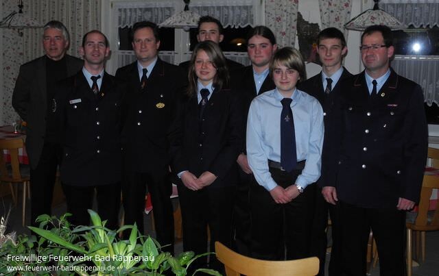 Am 21.01.2012 fand die Jahreshauptversammlung der Abteilungswehr Bonfeld im Sportheim statt. Abteilungskommandant Frank Rieth konnte OB Hans Heribert Blättgen und den 1. Stellv. Kmdt. Thomas Wachno als Gäste begrüßen. Kmdt. Felix Mann, Roland Deutschmann als Leiter des Ordnungsamtes und die örtlichen Gemeinderäte Bernd Hofmann und Helmut Wacker entschuldigten sich aufgrund anderer Verpflichtungen. Die Versammlung gedachte dem am 07.11.2011 verstorbenen Kameraden der Altersmannschaft Eugen Schnabel.In seinem Tätigkeitsbericht gab Abteilungskommandant Frank Rieth einen Rückblick auf das Dienstjahr 2011. 5 Einsätze und 5 Sicherheitsdienste wurden 2011 von der Abteilungswehr Bonfeld abgearbeitet. Mit Inbetriebnahme der neuen integrierten Leitstelle (ILS) wurde die neue Alarm- und Ausrückeordnung (AAO) eingepflegt. Bei Einsätzen der Abt. Bad Rappenau ab Gefahrenabwehrstufe 3 (GAS 3) z.B. BMA / Objektalarm Altenheim / Klinik wird die Abteilungswehr Bonfeld zukünftig immer hinzualarmiert. Eine gemeinsame Übung mit der Abt. Bad Rappenau in der Rosentrittklinik wurde bereits durchgeführt. Nach der Auslieferung unseres neuen hydraulischen Rettungsgerätes (Schere / Spreizer etc.) wurden wir zusammen mit der Abt. Bad Rappenau in einer Rescue-Schulung durch Ausbilder der Fa. Weber-Hydraulik in die neue Technik eingewiesen. Die alljährlichen Veranstaltungen (Kinderfasching, Grillfest, Kerwe) wurden organisiert und durchgeführt. Zur Pflege der Kameradschaft führte ein eintägiger Ausflug die Kameraden mit Familien nach Heilbronn unter dem Motto Wasser + Wein. Am Ende des Jahres fand unser Kameradschaftsabend mit Frauen + Freundinnen in der Gaststätte Traube in Fürfeld statt.Die Personalstärke zum Ende des Dienstjahres 2011: Die gesamte Abteilungswehr besteht aus 59 Feuerwehrkameraden (31 Einsatzabteilung (davon 2 weibl.), 13 Alter, 15 Jugend). Insgesamt wurden von verschiedenen Kameraden 18 Lehrgangsplätze auf Kreisebene belegt. 7 Kameraden nahmen an überregionalen Lehrgängen teil. Klaus Ehemann berichtete in seinem Kassenbericht von einem leicht rückläufigen Ergebnis. Jugendfeuerwehrwart Heiko Höllmüller informierte in seinem Bericht über die Aktivitäten der älteren Jugendgruppe. Die Übungen fanden hier mehrheitlich mit der Einsatzabteilung statt. Als Abschluss ihrer Jugendfeuerwehrzeit wurde ein Ausflug nach Berlin durchgeführt. Heiko Höllmüller bedankte sich bei den Jugendlichen für eine interessante und kurzweilige Zeit (6 Jahre). Benedikt Dieterich gab einen kurzen Rückblick über die Tätigkeiten der 2009 gegründeten neuen Jugendgruppe. Höhepunkt des Dienstjahres war der Erwerb der Jugendflamme Stufe I. Bei der offiziellen Überreichung der Anstecknadel durch Kmdt. Felix Mann während des Grillfestes waren zahlreiche Familienangehörige der Jfw-Mitglieder anwesend. Unter dem Tagesordnungspunkt Ehrungen und Beförderungen galt es für Abteilungskommandant Frank Rieth einiges abzuarbeiten. So konnte Kamerad Achim Hofmann für 40-jährige Dienstzeit geehrt werden. Mit Yilmaz Akdogan, Steffen Exner, Jürgen Hahn, Frank Rieth, Thomas Schanz und Hartmut Scholz konnten 6 Kameraden für 25 Jahre aktive Dienstzeit geehrt werden. Mit Moritz Grylicki, Manuel Hertlein, Carolin Klumbach, Marcel Sälzer, Dennis Scholz und Lukas Hinder konnten 6 Kameraden zu Feuerwehrmännern (SB) befördert werden. Als jüngstes Mitglied der älteren Jugendgruppe konnte Lisa Ehemann per Handschlag zum Dienst in der Einsatzabteilung verpflichtet werden.Hans Heribert Blättgen dankte den Einsatzkräften für die geleistete Dienst- + Einsatzbereitschaft an 365 Tagen für jeweils 24 Stunden. Besonders lobte er die aktive Jugendarbeit, welche für den Fortbestand der Abteilungswehr sehr wichtig ist. Stellv. Kommandant Thomas Wachno informierte über die neue ILS und die damit verbundene neue AAO. Er erwähnte die Veränderungen im Fuhrpark (Löschfahrzeug für den Katastrophenschutz = LF-KATs) und MTW Grombach. So befinden sich jetzt 19 Feuerwehrfahrzeuge und 2 Anhänger allesamt mit Beladung im Fuhrpark der Stadt Bad Rappenau. Dies alles muss gepflegt, gewartet und geprüft werden. Hierzu wird die Stadtverwaltung gem. Haushaltsbeschluss nun 2012 einen hauptamtlichen Gerätewart einstellen. Thomas Wachno informierte über den geplanten Erwerb des Leistungsabzeichens und forderte eine verstärkte Beachtung dieses Themas, da hier sogenannte Basics eingeübt werden und auch die Kameradschaft gefördert wird. Stellv. Kmdt.Thomas Wachno dankte auch im Namen von Felix Mann für die geleistete Dienst- + Einsatzbereitschaft sowie für die der Führungsmannschaft entgegengebrachte Unterstützung.Abteilungskommandant Frank Rieth dankte an dieser Stelle Kmdt. Felix Mann, Oberbürgermeister Hans-Heribert Blättgen und dem Leiter des Ordnungsamtes Roland Deutschmann für die gute Zusammenarbeit. Nachdem bereits durch die Kassenprüfer Werner Hofmann und Herbert Röhm die Entlastung von Kassier und Führungsmannschaft beantragt und erteilt wurde konnte die Versammlung beendet und in den kameradschaftlichen Teil übergeleitet werden.Bild 1 (Ehrungen) v.l.n.r.: 2. Stellv. Kmdt.Thomas Wachno, OB Hans Heribert Blättgen, Jürgen Hahn, Steffen Exner, Abteilungskommandant Frank Rieth, Hartmut Scholz, Achim Hofmann, stellv. Abteilungskommandant Thomas SchanzBild 2 (Beförderungen + Übernahme) v.l.n.r.: OB Hans Heribert Blättgen, 2. Stellv. Kmdt.Thomas Wachno, Jfw-Wart Heiko Höllmüller, Manuel Hertlein, Carolin Klumbach, Moritz Grylicki, Lisa Ehemann, Lukas Hinder, Abteilungskommandant Frank Rieth