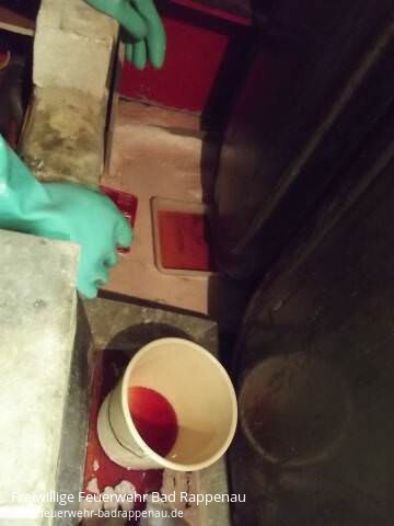 Um 21:20 Uhr schließlich der dritte Alarm des Tages für die Abt. Bad Rappenau und zusätzlich für die Abt. Wollenberg. In einem Wohnhaus waren am Morgen die Öltanks mit 3000 Liter Heizöl befüllt worden. Der Besitzer merkte nun, dass einer der beiden Tanks, die miteinander verbunden waren, eine Leckstelle hatte und Heizöl in die Auffangwanne lief. Die Abt. Wollenberg stellte den Brandschutz sicher und die Abt. Bad Rappenau versuchte mit Material aus Rüstwagen RW 1 und Gerätewagen Gefahrengut GW-G2 das Heizöl aufzunehmen und die Mauer der Auffangwanne zu stabilisieren. Nachdem kein Tankwagen organisiert werden konnte entschloss sich der Einsatzleiter bei der BF Heilbronn den Abrollbehälter Gefahrengut anzufordern um den Inhalt der Tanks in dieses Fahrzeug umzupumpen.