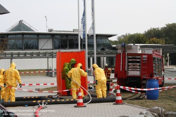 Um 12.47 Uhr wurde die Feuerwehr Bad Friedrichshall mit dem Stichwort Gefahrguteinsatz Friedrich-von-Alberti-Gymnasium alarmiert. Kurz zuvor meldete eine Lehrkraft dem Hausmeister einen starken Geruch im Chemievorbereitungsraum, was auf einen Austritt von Brom, welches in einem extra dafür vorgehalten Gefahrgutschrank untergebracht wird, vermuten ließ.Der bereits telefonisch verständigte Kommandant ließ in Absprache mit der Schulleitung und der Stadtverwaltung unverzüglich zur Vorsichtsmaßnahme das komplette Schulgebäude räumen sowie die Feuerwehrkräfte alarmieren. Gemäß dem Einsatzstichwort wurden zusätzlich zu den Kräften der Feuerwehr Bad Friedrichshall nach dem einheitlichen Alarmplan des Landkreises Heilbronn, der Gefahrgutzug, der Gerätewagen Messtechnik sowie eine Dekontaminationseinheit alarmiert. Ebenfalls vor Ort war eine Fachberaterin Chemie der Feuerwehr.Aus ungeklärter Ursache kam es, wie vermutet, tatsächlich zu einem Austritt von Brom innerhalb des Sicherheitsschrankes. Unter Schutzanzügen (CSA) wurde das beschädigte Fläschchen geborgen und in ein spezielles, luftdichtes Behältnis verpackt und ins Freie gebracht. Parallel dazu wurden im gesamten Schulgebäude und dessen Umgebung Messungen mit Spezialgeräten der Feuerwehr durchgeführt. Gesundheitsbedenkliche Messwerte konnten zu keiner Zeit festgestellt werden.Vorsorglich wurden 11 Personen, welche den Chemievorbereitungsraum im Vorfeld betreten haben von einem Rettungsteam auf Atemwegsbeschwerden untersucht. Hierfür wurden seitens der Stadtverwaltung Räume in der direkt anliegenden Mensa zu Verfügung gestellt. Im weiteren Verlauf wurden von der Schulleitung alle Klassenlisten der Schüler besorgt, welche im angrenzenden Chemiesaal nach den Sommerferien bereits unterrichtet wurden. Rund 200 Schüler und ihre Eltern wurden durch die Stadtverwaltung und die Schulleitung telefonisch über den Sachverhalt informiert und gebeten, bei eventuellen Atembeschwerden sofort einen Arzt aufzusuchen. Glücklicherweise ist bis jetzt kein Fall mit derartigen Beschwerden oder Symptomen gemeldet worden.Nachdem diese Maßnahmen getroffen waren wurden weiter Messungen im Schulgebäude durchgeführt, sowie eine massive Lüftung der Räumlichkeiten eingeleitet. Aufgrund der abschließenden Messergebnisse wurde das Gebäude durch die Fachberaterin Chemie für den morgigen Schulbetrieb wieder frei gegeben. Als weitere Sicherheitsmaßnahme hat die Stadtverwaltung sofort eine Spezialfirma beauftragt, die beaufschlagten Räume akribisch zu reinigen. Der ausgetretene Gefahrstoff wurde fachmännisch durch Spezialisten entsorgt.Rund 30 Fahrzeuge und knapp 100 Einsatzkräfte von Feuerwehr, Rettungsdienst und Polizei konnten nach zirka 3 Stunden die Einsatzstelle an den Hausmeister der Schule übergeben.