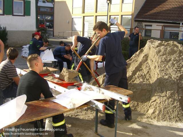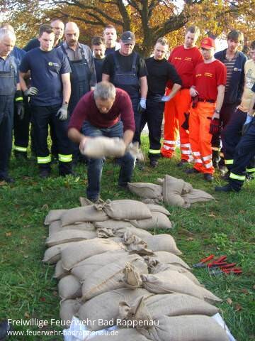 Übung in Heinsheim: Einsatzkräfte holen sich Rüstzeug für den Fall des HochwassersArtikel der KST zur Hochwasserschutzübung am 20.10.2012 in HeinsheimBad Rappenau Samstagnachmittag 60 Feuerwehrleute aus der Gesamtstadt Bad Rappenau sind im Feuerwehrhaus in Heinsheim angetreten. Auf dem Programm steht eine Hochwasserschutzübung der Freiwilligen Feuerwehr, angeleitet vom Zweckverband Hochwasserschutz Elsenz-Schwarzbach. Es ist die erste Übung dieser Art, sagte Matthias Kampp, Heinsheims Kommandant.Bevor die Wehrleute ausrücken , um an drei Stationen die Praxis zu üben, lernen sie die nötige Theorie, denn Hochwasser gibt es immer, ob am Fluss oder in der Ortslage, so Henry Liphardt vom Zweckverband. Hans-Ulrich Kretz, Leiter des Tiefbauamts, bestätigt: Allein in Heinsheim habe es 1993, 1995 und 1996 schwere Hochwasser gegeben. In den letzten zwei Jahrzehnten habe die Stadt viele Gegenmaßnahmen ergriffen, erklärt OB-Stellvertreter Willi Freymeyer. Der Neckar zeige sich ja meist friedlich und gemächlich: Er kann aber auch ein garstiger Geselle sein, wenn er über die Ufer tritt. Die Wehrleute proben, damit sie im Ernstfall fachkundig gegen die Fluten angehen können und wissen, wie man hinlangt, so Liphardt, der den teilnehmenden Feuerwehrleuten, Bauhofmitarbeitern und DLRG-lern das richtige Handwerkzeug mitgeben will.Strategie Der Sandsack ist das Universalwerkzeug, erklärt er. Auf dem Parkplatz hinter dem Feuerwehrhaus übt eine Gruppe den Aufbau einer Sandsack-Abfüllstation. Dafür braucht man viele Helfer, eine gute Strategie sowie eine durchdachte Logistik für das Füllen der Säcke und den Transport zum Einsatzort. Hier wird auch ausprobiert, welche Hilfen am besten taugen: Soll der Sand durch abgeschnittene Pylonen in die Säcke kommen, durch Abfülltrichter oder ein Stück Plastikrohr? Entwickeln Sie ruhig eigene Ideen, fordert Liphardt auf. 16 Tonnen Sand füllen die Kameraden in Säcke, lernen Stapeltechniken und legen die Strecke fest, auf der sie am schnellsten zum Einsatzort gebracht werden. Eine andere Gruppe kontrollierte Hinderlandszuflüsse, Pumpstellen, Verdolungseinläufe.Viel geholfen ist schon, wenn Laub oder Äste regelmäßig aus den Rechen entfernt werden. Sonst schwappt im Ernstfall das Wasser hinunter ins Dorf.Sperre Drittes Szenario ist der Neckar-Übertritt. Im Jahr 2000 wurde der 330 Meter lange, mannshohe Hochwasserdamm eingeweiht, den der Weg zum Sportplatz quert. Diese Öffnung dichten die Wehrleute mit einer Balkensperre ab. Auch der Aufbau einer Barrikade aus hunderten von Sandsäcken, die gegen Damm-Durchsickerung wirkt, steht auf dem Programm. Die Bevölkerung könne im Ernstfall mithelfen, etwa beim Füllen der Säcke. Besonders wichtig sei, alles gut zu planen. Bürger selbst können in Eigenregie vorsorgen. Tipps gibt unter anderem die Seite www.um.baden-wuerttemberg.de/servlet/is/83245/. Siehe Artikel im PDF-Anhang