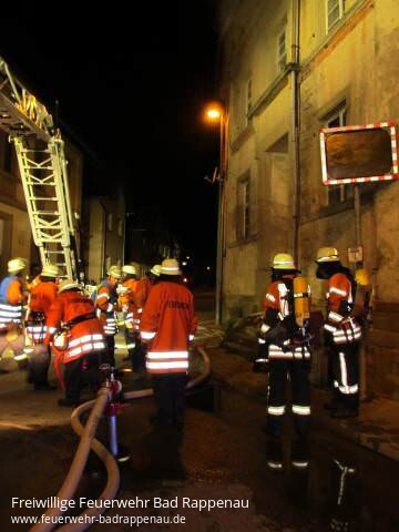 Am Freitag, den 19.10.2012 um 19:44 Uhr wurde die Freiwillige Feuerwehr Abt. Grombach mit dem Einsatzstichwort Zimmerbrand mit Personen in Gefahr, Ortsstr 62, alarmiert. Diese rückte nur wenige Minuten später mit LF- KatS und MTW aus. Gleichzeitig wurden die Kameraden der Abteilungswehr Bad Rappenau mit Drehleiter und LF alarmiert. An der Einsatzstelle angekommen stellte sich für den Gruppenführer folgende Lage dar: in einem 3-geschossigen Einfamilienhaus brach im 2. OG ein Feuer aus. Durch die starke Rauchentwicklung schafften es zwei Personen nicht mehr sich ins Freie zu retten. Sofort machte sich der Angriffstrupp an die Arbeit. Ausgerüstet mit Atemschutz betrat der Trupp das Haus, um die vermissten Personen zu suchen. Schon nach kurzer Zeit konnte der Trupp den Fund einer Person melden, die dann sofort ins Freie gebracht wurde. Der Wassertrupp machte sich dann sofort auf die weitere Suche nach der zweiten Person. Die Abt. Bad Rappenau brachte die Drehleiter in Stellung. Die zweite Person, die ebenfalls schnell gefunden wurde, konnte über das Fenster mit der Drehleiter aus dem Haus gebracht werden. Auch der Brand konnte schnell unter Kontrolle gebracht werden. Der Gruppenführer meldete um 20:20 Uhr Feuer schwarz. Personen gerettet. Dieses war, zum Glück, nur ein Übungsszenario bei der jährlichen Hauptübung der Abteilungswehr Grombach Auf diesem Weg möchten wir uns bei allen teilnehmenden Kameraden der Feuerwehr, bei Kommandant Felix Mann und seinem Stellvertreter Thomas Wachno sowie allen Zuschauern bedanken. Besonderer Dank gilt Jan Hemmer, der uns sein Gebäude zur Verfügung gestellt hat.