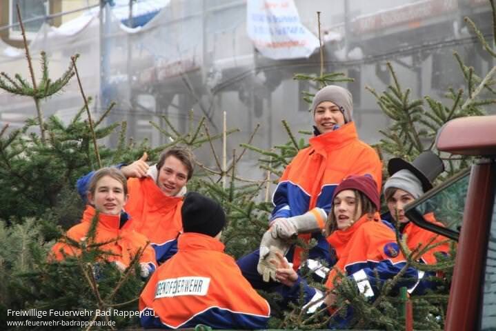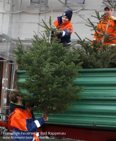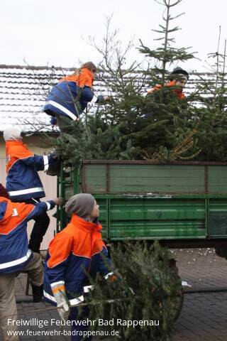 Die grünen Tannen haben ihren Dienst getan: 22 Helfer der Jugendfeuerwehr haben in Bonfeld mit großem Eifer am Samstag Christbäume eingesammelt. In Heinsheim, Bad Rappenau und Siegelsbach taten es ihnen die Kameraden gleich. In anderen Orten im Kraichgau übernahmen andere Vereine diese Aufgabe. Die Bonfelder Merlin und Benedikt sind dabei schon alte Hasen: "Die Leute sind durchweg freundlich, die Spendenbereitschaft ist groß und oft bekommen wir von den Leuten neben der Spende auch noch etwas zu Trinken oder zu Essen hingestellt", erzählen die beiden Teenager. Merlin hat mit einem alten Signalhorn den Sammeltrupp angekündigt. "Das haben wir schon zu meiner Zeit bei der Jugendfeuerwehr so gemacht", erinnert sich Abteilungskommandant Frank Rieth.Zwischen zwei und fünf Euro je Baum liege der einzelne Spendenbetrag in der Regel. "In den rund zwei Stunden kommen wir so schon mal auf einen Reingewinn von 400 bis 500 Euro", so Rieth. Das Geld fließt in die Jugendkasse, wo es gut angelegt ist. "Wir finanzieren mit den Spenden Ausflüge oder Startgebühren", erzählt Merlin. "Wir waren auch schon mal Kartfahren. Außerdem bezahlen wir von den Spenden unser Abschlussessen nach dem Christbaumsammeln." Nach getaner Arbeit kamen in diesem Jahr gebratene Hähnchen auf den Tisch.Bild: Begeistert luden die 22 Helfer Weihnachstbäume auf (Foto: Franz Theuer)