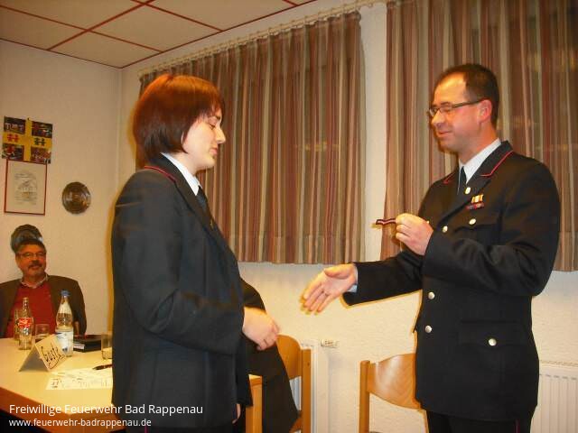 Am 26.01.2013 fand die Jahreshauptversammlung der Abteilungswehr Bonfeld im Feuerwehrhaus Bonfeld statt. Abteilungskommandant Frank Rieth konnte OB Hans Heribert Blättgen und Kommandant Felix Mann als Gäste begrüßen. Ebenso konnte er die örtlichen Gemeinderäte Bernd Hofmann und Helmut Wacker willkommen heißen. Außerdem waren Ehrenabt.-Kmdt. Günter Flach und Ehrenmitglied Otto Gundelfinger anwesend und wurden besonders begrüßt. Die Versammlung gedachte dem am 20.12.2012 verstorbenen Kameraden der Altersmannschaft Werner Trantow.In seinem Tätigkeitsbericht gab Abteilungskommandant Frank Rieth einen Rückblick auf das Dienstjahr 2012. Insgesamt 17 Einsätze (2 Kleinbrände / 4 Fahrzeugbrände / 1 Mittelbrand / 3 Verkehrsunfälle / 1 Ölspur / 1 Gefahrgutunfall / 2 blinde Alarme / 3 Objektalarme/BMA) wurden 2012 von der Abteilungswehr Bonfeld abgearbeitet. Von den 17 Einsätzen waren 4 Einsätze auf Gemarkung Bad Rappenau oder anderen Teilorten bzw. überörtlich. 13 Einsätze waren auf Gemarkung Bonfeld, hiervon wiederum alleine 6 Einsätze im Gewerbegebiet Buchäcker. Bei Einsätzen der Abt. Bad Rappenau ab Gefahrenabwehrstufe 3 (GAS 3) z.B. BMA / Objektalarm Altenheim / Klinik wird die Abteilungswehr Bonfeld zukünftig immer hinzualarmiert. Die alljährlichen Veranstaltungen (Kinderfasching, Grillfest, Kerwe) wurden organisiert und durchgeführt. Zur Pflege der Kameradschaft führte ein eintägiger Ausflug die Kameraden mit Familien nach Rothenburg ob der Tauber. Am Ende des Jahres fand unser Kameradschaftsabend mit Frauen + Freundinnen in der Brauereigaststätte Hotel Häffner in Bad Rappenau statt.Die Personalstärke zum Ende des Dienstjahres 2012: Die gesamte Abteilungswehr besteht aus 58 Feuerwehrkameraden (32 Einsatzabteilung (davon 3 weibl.), 12 Alter, 14 Jugend). Von den Kameraden Lukas Hinder, Marcel Sälzer, Carolin Klumbach und Jana Tiedt wurde die Leistungsprüfung in Bronze abgelegt. Alle Atemschutzgeräteträger besuchten eine Heißausbildung, die von der Abteilungswehr Wollenberg organisiert wurde. In seinem Kassenbericht berichtete Klaus Ehemann von einem leicht rückläufigen Ergebnis. Für die Jugendfeuerwehr gab Benedikt Dieterich einen Rückblick über das abgelaufene Dienstjahr mit allen Aktivitäten der Jugendgruppe. Höhepunkt des Dienstjahres war der Erwerb der Jugendflamme Stufe II. Unter dem Tagesordnungspunkt Ehrungen und Beförderungen galt es für Abteilungskommandant Frank Rieth einiges abzuarbeiten. Nachdem Heiko Höllmüller sein Amt als Jugendgruppenleiter aus beruflichen und familiären Gründen aufgeben musste, wird diese sehr wichtige Aufgabe Jana Tiedt übernehmen. Sie war bisher schon in unserem Team als Jf-Betreuerin tätig und wird bestimmt die anstehenden Aufgaben meistern. Sie ist somit auch zukünftig im Abteilungsausschuss vertreten. Nach ihrem ersten Dienstjahr in der Einsatzabteilung erhielt Kameradin Lisa Ehemann nun als Dienstgradabzeichen "1 Schwinge karmesinrot" und führt jetzt den Dienstgrad "Feuerwehrfrau". Außerdem konnte mit Thomas Schanz ein Kamerad, 20 Jahre nach seiner Ernennung zum Löschmeister, nachdem er zuvor die Ausbildung als Gruppenführer an der Landesfeuerwehrschule B-W besuchte und zwischenzeitlich Oberlöschmeister wa,r nun zum Hauptlöschmeister befördert werden. Mit Albrecht Meisenhelder ehrte die Abt. einen Kameraden für 40 Jahre aktive Dienstzeit. Die offiziellen Ehrungen und Beförderungen folgen auf der Jahreshauptversammlung der Gesamtwehr am Samstag, 09. März 2013 in Babstadt.