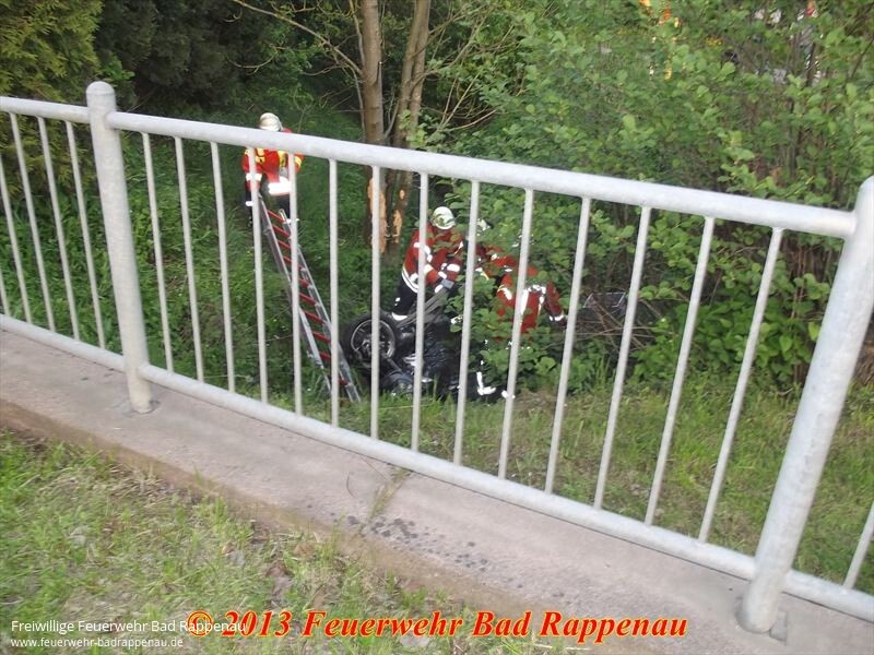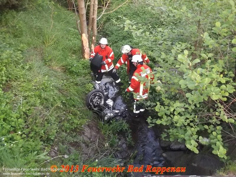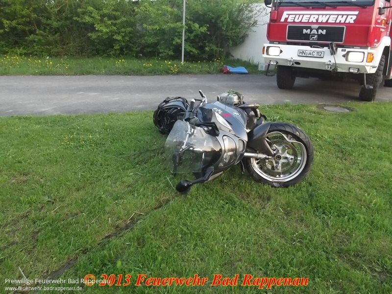 Gleich zwei Einsätze innerhalb einer halben Stunde hatte die Abteilung Bad Rappenau zu bewältigen.Um 19:52 Uhr wurde die Abteilung zur Unterstützung des Rettungsdienstes zu einem Motorradunfall in die Heinsheimer Straße gerufen.Dort war ein Kradfahrer aus bislang unbekannter Ursache von der Fahrbahn abgekommen und gegen einen Baum geprallt.Das Motorrad blieb in dem dort vorbeilaufenden "Dobach" liegen und Betriebstoffe liefen aus.Der Fahrer wurde in die Tujahecke eines angrenzenden Grundstückes geschleudert.Der Biker wurde vom Rettungsdienst versorgt und mit Unterstützung von Feuerwehrkräften aus der Hecke gerettet. Nach der weiteren Versorgung im Rettungswagen 5/83-1, wurde der Schwerstverletzte mit einem Rettungshubschrauber in ein Krankenhaus abtransportiert.Zeitgleich wurde in den Bach eine Ölsperre eingebracht und das verunfallte Motorrad mit der Seilwinde des Rüstwagens geborgen.Während der Rettungsmaßnahmen war die Heinsheimer Straße voll gesperrt.Kurz nachdem der verunfallte Motorradfahrer aus der Hecke gerettet worden war, löste die Leitstelle um 20:17 Uhr nochmals Alarm für die Abteilung Bad Rappenau aus. Diesmal meldete die ILS einen Melderalarm in einer Gaststätte im Kurgebiet.Das Löschfahrzeug konnte aus dem ersten Einsatz herausgelöst werden und die zweite Einsatzstelle anfahren.Vorsorglich wurde über die Leitstelle auf GAS (Gefahrenabwehrstufe) 3 erhöht und Vollalarm für die Abteilung Bad Rappenau ausgelöst. (weiteres siehe Einsatzbericht auf der örtlichen Homepage).