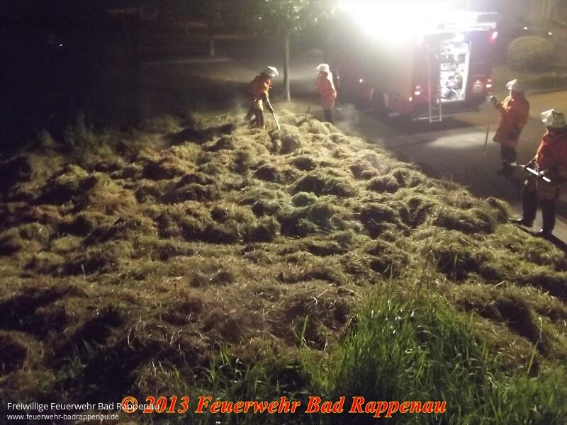 Vermutlich auf Grund von Selbstentzüdung war ein Heuhaufen auf einer Wiese in der Heinsheimer Neckarstraße in Brand geraten.Die alarmierte Abteilung Heinsheim zog den stark rauchenden Heuhaufen auseinander und löschte ihn ab.