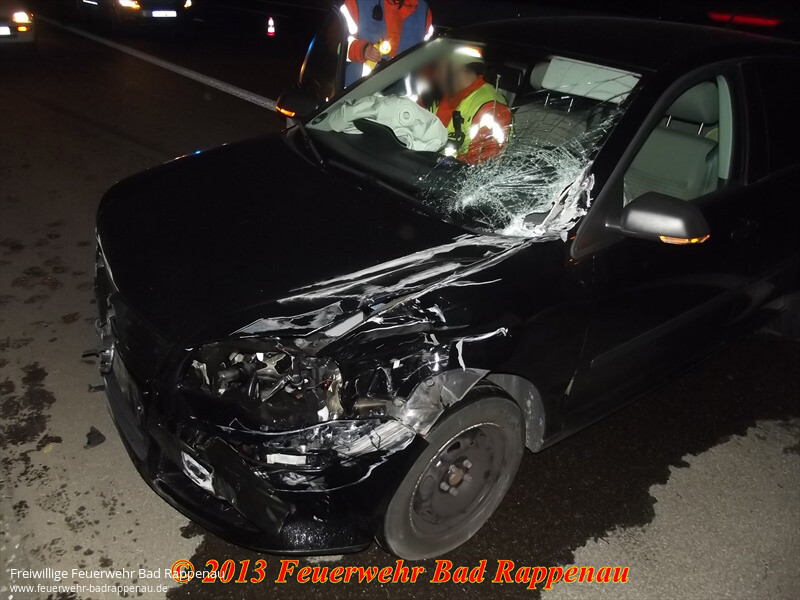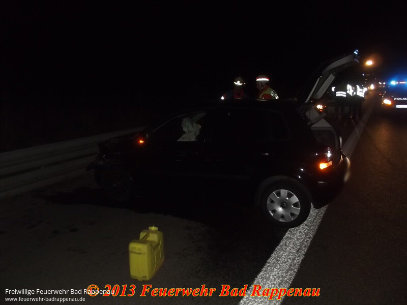 Die Abteilung Bad Rappenau wurden von der ILS Heilbronn zu einem Verkehrsunfall auf die Autobahn A6 gerufen.Dort war ein in Richtung Mannheim fahrender PKW aus unbekannter Ursache mit einem LKW kollidert.Der PKW geriet ins Schleudern und blieb quer zur Fahrbahn auf dem Standstreifen stehen.Die leichtverletzte Fahrerin wurde vom Rettungsdienst versorgt.Nach dem Absichern der Einsatzstelle wurde der rechte Fahrstreifen von herunfliegenden Fahrzeugteilen gereinigt. Ausgelaufene Betriebsmittel wurden mit Ölbindemittel abgestreut.Abschließend wurde die Fahrzeugbatterie abgeklemmt.