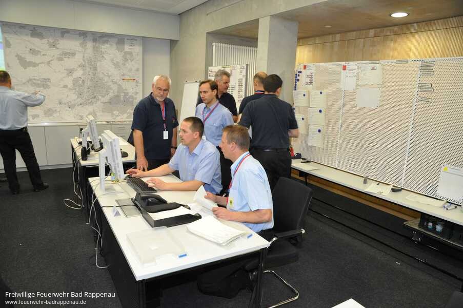 Am Samstag Vormittag wurde eine unwetterbedingte Großschadenslage im gesamten Stadt- und Landkreis Heilbronn geprobt. Ziel der Übung war zum einen das Unwettermodul des Leitrechners der Integrierten Leitstelle (ILS) auf Herz und Nieren zu prüfen, die Leistelle selbst einem Stresstest zu unterziehen und die Kommunikationswege sowohl zwischen der ILS und den Führungshäuser der Feuerwehren als auch zwischen den Führungshäusern und den im Einsatz befindlichen Kräften zu testen. Der Heilbronner Feuerwehrkommandant Eberhard Jochim betonte vor der Übung, dass solche Ereignisse nur gemeinsam durch Stadt- und Landkreis bewältigt werden können. Entsprechend war der Führungsraum auch mit Personal aus beiden Bereichen besetzt.Um einem Realfall möglichst nah zu kommen, erfolgten 150 Notrufe über die „112“ aus den Ortsnetzen von Gemmingen, Schwaigern, Kirchhausen und Bad Rappenau, die innerhalb von 20 Minuten eingingen. Diese wurde von 22 zuvor definierten Anrufern ausgeführt. Da die Rufnummern dieser Personen zuvor im Leitrechner hinterlegt wurden, war sichergestellt, dass in diesem Zeitraum eingehende echte Notrufe sofort herausgefiltert und mit Vorrang bearbeitet werden konnten. Nach dem Übungsstart kümmerten sich zwei Disponenten ausschließlich um solche Notrufe. Im Verlauf der Übung waren dies dann letztendlich 16 Rettungsdienst- und drei Feuerwehreinsätze sowie diverse Krankentransporte.Bei entsprechenden Lagen kommt in der ILS das sogenannte „Umwettermodul“ zur Anwendung, welches die Einsatzaufträge an die Feuerwehren nach erfolgter Notrufabfrage automatisch per Fax versendet. Die betroffenen Wehren erhalten einen Erstalarm, alle Einsatzaufträge werden danach nur noch per Fax übermittelt.Jede Gemeindefeuerwehr hat ein definiertes Führungshaus. Dieses ist in aller Regel das Feuerwehrhaus der Kerngemeinde. Von dort aus koordiniert ein örtlicher Führungsstab die eingehenden Einsätze selbstständig und teilt diese dann seinen Abteilungen bzw. den verfügbaren Einheiten zu.Bei der Übung wurde davon ausgegangen, dass es sich um ein durch entsprechende Unwetterwarnungen des Wetterdienstes absehbares Ereignis handelt. D.h. es war ausreichend Vorlauf, in diesem Fall 30 Minuten, um sowohl die örtlichen Führungshäuser als auch den Führungsstab in der ILS zu besetzen. Ebenso wurde das Leistellenpersonal hochgefahren, so dass alle Notrufannahmeplätze besetzt waren.Ab 9 Uhr gingen die ersten Notrufe aus Gemmingen ein. Kurze Zeit späten kamen dann die Notrufe aus Schwaigern, dann zog des Unwetter in Richtung Kirchhausen und Bad Rappenau, was dazu führte, dass mit etwas Verzögerung schließlich auch Anrufe aus diesen beiden Ortsnetzen eingingen. Ab 9:20 Uhr wurden weitere rund 300 Einsätze manuell erfasst und allen übrigen Landkreiswehren zugeteilt.Letztendlich wurden aus diesen knapp 500 Notrufen etwa 1.000 Einsätze. Wie in der Realität bei solchen Ereignissen, wurden die örtlichen Feuerwehren von geschädigten Bürgern auch direkt angefordert oder eine z.B. zum Auspumpen eines Kellers eingesetzte Einheit wird von einem Nachbar informiert, dass auch dort der Keller unter Wasser steht.Nach dem Übungsende um 12 Uhr konnte bereits ein erstes Fazit gezogen werden. Adrian Mehler, zuständiger Dezernent im Landratsamt Heilbronn hob vor allem den Lerneffekt in der Leitstelle und in den Führungshäusern hervor. Kreisbrandmeister Uwe Vogel stellte fest, dass sich das Konzept bewährt hat. Natürlich wurden auch Schwachstellen erkannt. So muss der Faxversand der Alarmdepeschen an die Führungshäuser verbessert werden. Auch bei den Abläufen im Führungsraum gab es Erkenntnisse über möglich Optimierungen. Im Laufe der kommenden Woche müssen die Protokolle der 22 Notrufer ausgewertet werden, um Erkenntnisse über die Erreichbarkeit der Leistelle bei einer solchen Extremsituation zu bekommen. Die Zusammenarbeit der beiden Führungsstäbe aus dem Stadt- und Landkreis im Führungsraum hat sich bestens bewährt.Fotos: Feuerwehr Heilbronn
