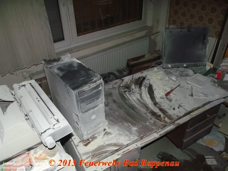 Zum vierten Einsatz an diesem Wochenende musste die Abteilung Bad Rappenau am Sonntagabend ausrücken.Nach einer Fehlalarmierung aufgrund Wasserdampfbildung beim Trocknungsvorgang am Lagerhaus, einem Auffahrunfall an der Anschlussstelle Bad Rappenau und dem schweren Verkehrsunfall auf der Autobahn am Samstagmorgen, wurden die Abteilungen Bad Rappenau und Bonfeld in die Forlenstraße mit dem Einsatzstichwort „Kellerbrand – Menschenleben in Gefahr“ gerufen.Zwei Feuerwehrkameraden, die in der unmittelbaren Nachbarschaft wohnen, konnten den Brand mittels eines Pulverlöschers bis zum Eintreffen des Löschzuges ablöschen.In der Einliegerwohnung im Kellergeschoss war in einem Büroraum aus unbekannter Ursache ein Brand ausgebrochen.Ein Trupp des eintreffenden Löschfahrzeugs ging unter Atemschutz in den Keller vor, um den gelöschten Brand zu kontrollieren, Nachlöscharbeiten durchzuführen und den Brandschutt aus dem Gebäude zu bringen.Abschließend waren noch umfangreiche Belüftungsmaßnahmen erforderlich, um das gesamte Wohnhaus wieder rauchfrei zu bekommen.