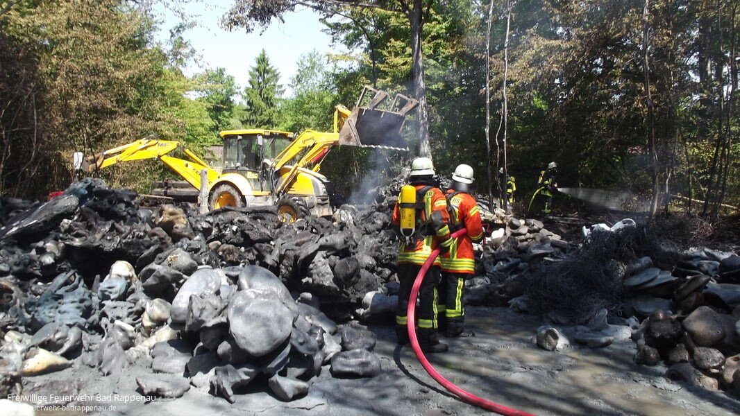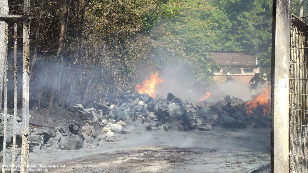 Um kurz vor 12 Uhr wurden die Feuerwehren Siegelsbach und die Abteilung Bad Rappenau zu einem Gebäudebrand in das alte Gerätedepot in Siegelsbach alarmiert.Aufgrund der Alarmmeldung wurde auch ein Großaufgebot an Einsatzkräften vom Rettungsdienst im Marsch gesetzt.Nach dem Eintreffen der ersten Einsatzkräfte konnte Entwarnung gegeben werden, was den gemeldeten Gebäudebrand anbetraf. Es brannten „lediglich“ Kunststoffabfälle, welche im Freien zur Wiederaufbereitung gelagert wurden.Der Brand wurde von zwei Seiten her zunächst mit 2 B-Rohren bekämpft. Im weiteren Verlauf kamen dann bis zu 3 C-Rohre zum Einsatz.Die Kollegen vom Rettungsdienst konnten aus dem Einsatz entlassen werden, zur Eigensicherung blieb nur ein RTW vor Ort.Umstehende Bäume wurde erheblich beschädigt. Die genaue Schadenshöhe kann noch nicht beziffert werden.Eine Ursache für den Brandausbruch ist noch unbekannt, die Polizei hat die Ermittlungen aufgenommen.