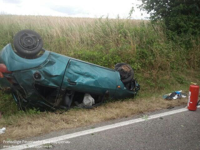 Die Integrierte Leitstelle alarmierte die Abteilungen Obergimpern und Bad Rappenau an diesem Nachmittag mit dem Einsatzstichwort „PKW-Brand“.Auf der Landesstraße L549 war ein Fahrzeug verunfallt und blieb im angrenzenden Straßengraben auf dem Dach liegen.Alle vier Insassen wurden leicht verletzt und konnten das Fahrzeug eigenständig verlassen.Die Kräfte der Feuerwehr Bad Rappenau sicherten die Unfallstelle ab, stellten den Brandschutz sicher und unterstützten den Rettungsdienst bei der Verletztenversorgung.Ein Notarzt sowie drei Rettungswagen waren zur Versorgung der Verletzten an der Unfallstelle.