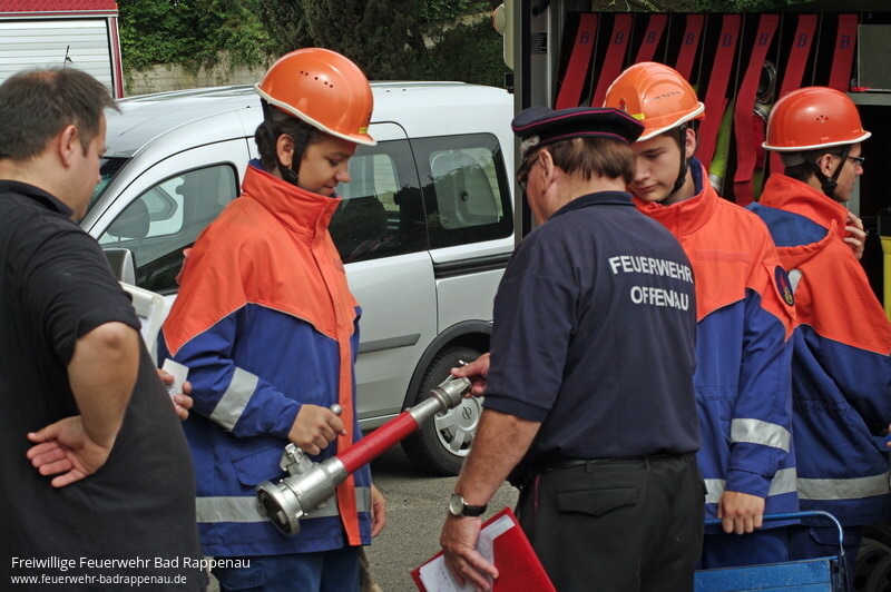 Die Abnahme der Jugendflamme 2 fand am 28. Juni 2014, zeitgleich mit dem Leistungsabzeichen, in Brackenheim statt.Pünktlich um 8 Uhr waren die ersten 5 Jugendfeuerwehren zur Abnahme angetreten.Die 10 Mannschaften wurden von Kreisjugendwartin Katrin Semen begrüßt. Sie wünschte den Mannschaften viel Erfolg.Alle Mannschaften absolvierten die Stationen Weitsprung, 400-Meter-Lauf, Hindernisparcours und Feuerwehrwissen. An der Station Feuerwehrtechnik entschied das Los darüber, ob die kleine Wasserkanone, ein Schaumangriff oder der Aufbau Wasser über Graben gezeigt werden musste.Die gezeigten Leistungen überzeugten das Schiedsrichterteam und so fand die Übergabe der Abzeichen unter Anwesenheit von Kreisbrandmeister Uwe Vogel und dessen Stellvertreter Uwe Thoma um 12 Uhr statt.Um 12.30 Uhr begannen weitere 4 Jugendfeuerwehren, mit insgesamt 9 Mannschaften, ihre Abnahme der Jugendflamme.Auch hier überzeugten die Leistungen das Schiedsrichterteam, so dass die Übergabe der Abzeichen um 16 Uhr stattfinden konnte.Die Jugendlichen erhielten ihre Abzeichen von Kreisjugendwartin Katrin Semen, Kreisbrandmeister Uwe Vogel und dem stellvertretenden Verbandsvorsitzenden Martin Kuhmann.Erfolgreich waren:Bad Friedrichshall 1 & 2Brackenheim 1 & 2GüglingenGundelsheim 1 &Möckmühl-Züttlingen 1 & 2Neckarsulm 1, 2 & 3Nordheim 1 & 2Oedheim 1, 2 & 3Offenau 1 & 2Die Kreisjugendfeuerwehr Heilbronn bedankt sich bei den Jugendlichen und ihren Betreuern, der ausrichtenden Feuerwehr Brackenheim und dem Schiedsrichterteam für ihr Engagement.Bild 1: KBM Uwe Vogel und Kreisjugendfeuerwehrwartin Katrin Semen übereichen die AbzeichenBild 2: KBM Uwe Vogel gratuliert den Teilnehmer für die tollen LeistungenBild 3: Übergabe der JugendflammeBild 4 – 6: HindernisparcourBild 7 u. 8: Prüfung des FachwissensBild 9 u. 10: kleine WasserkanoneFotos: Volker Lang