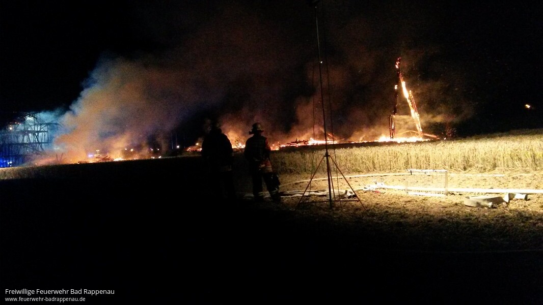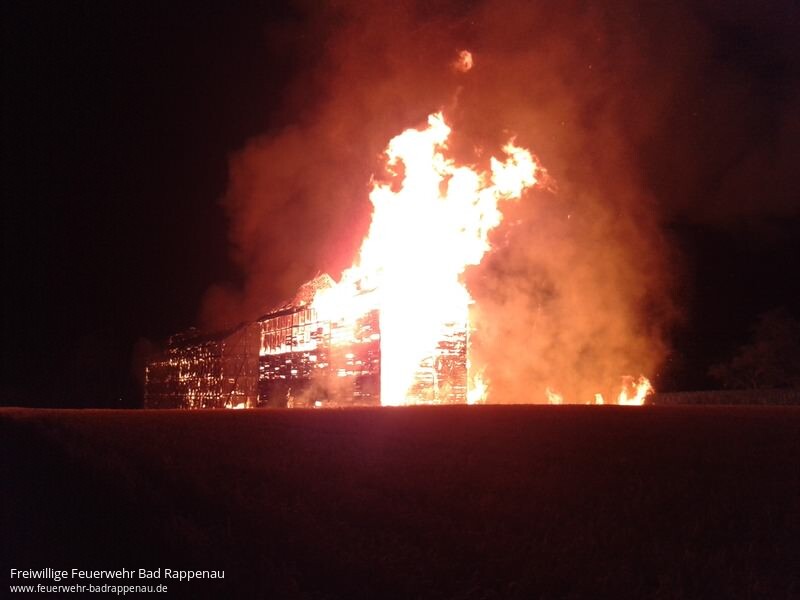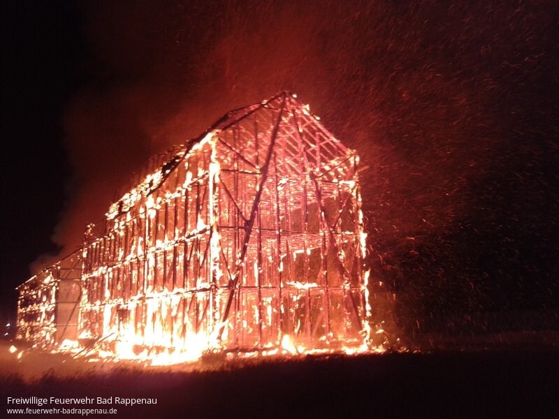 Die Abteilung Bad Rappenau wurde in der Nacht zum Samstag zur Überlandhilfe nach Bad Wimpfen gerufen.Am Ortseingang Bad Wimpfen brannten die beiden Tabakscheunen lichterloh.Trotz des schnellen Eingreifens der Feuerwehren Bad Wimpfen, Bad Rappenau und Neckarsulm brannten beide Scheunen bis auf die Grundmauern nieder.