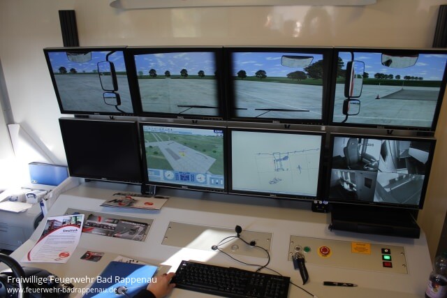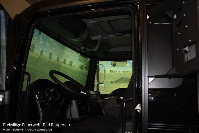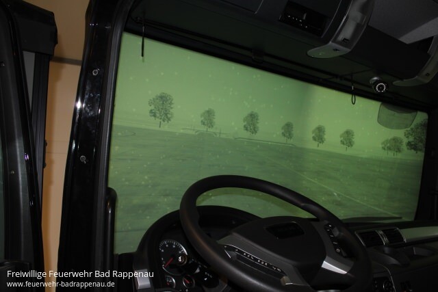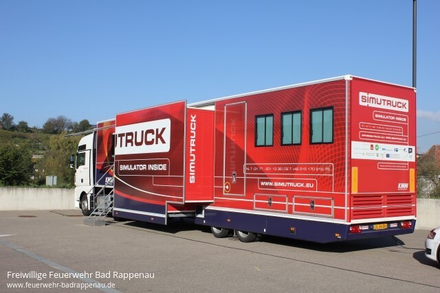 Am 24.10.14 machte der „Simutruck“ der Firma Verkehr & Ausbildung Hartmann aus Esslingen bereits zum zweiten Mal Station bei der Feuerwehr in Lauffen, um den Maschinisten der Feuerwehren aus dem Landkreis Heilbronn, dem Rems-Murr-Kreis und dem Landkreis Ludwigsburg, im Simulationsbetrieb außergewöhnliche Szenarien des öffentlichen Verkehrs auf Einsatzfahrten näher zu bringen und diese entsprechend zu sensibilisieren.Vor dem eigentlichen Fahrertraining im 4-D-Simulator steht erst einmal ein rund zweistündiger Theorieteil statt, in welchem speziell auf die Fahrdynamik und das physikalische Verhalten von Großfahrzeuge eingegangen wird.Im ca. 90 Minuten andauernden praktischen Teil, welcher in Dreiergruppen in einer echten LKW-Fahrerkabine stattfindet, wird den Maschinisten mit einer 4-D-Technik eine fast reale Einsatzfahrt mit unterschiedlichen Verkehrssituationen, Fahrbahnbedingungen, Witterungs- und Lichtverhältnissen simuliert, welche auch entsprechend aufgezeichnet wird.Um mögliche Schwachpunkte oder Leichtsinnsfehler zu erkennen, bzw. diese auf tatsächlichen Einsatzfahrten auszuschließen, findet anhand der gefertigten Aufzeichnungen eine Nachbesprechung statt. Das Simulationstraining ist nicht nur für jüngere oder nicht so erfahrene Maschinisten zu empfehlen. Auch „alte Hasen“ können durch ein solches Training sicherlich noch etwas dazu lernen.Da bei diesem Simulationstraining die Unversehrtheit der Maschinisten und der zu befördernden Einsatzkräfte aber auch die Sicherheit der zu bewegenden Einsatzmittel im Vordergrund steht, wird diese Fortbildung aktuell auch durch eine teilweise Kostenübernahme durch die Unfallkasse Baden-Württemberg unterstützt.