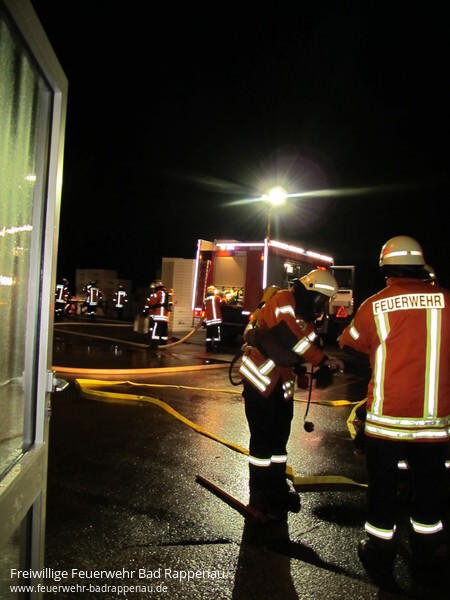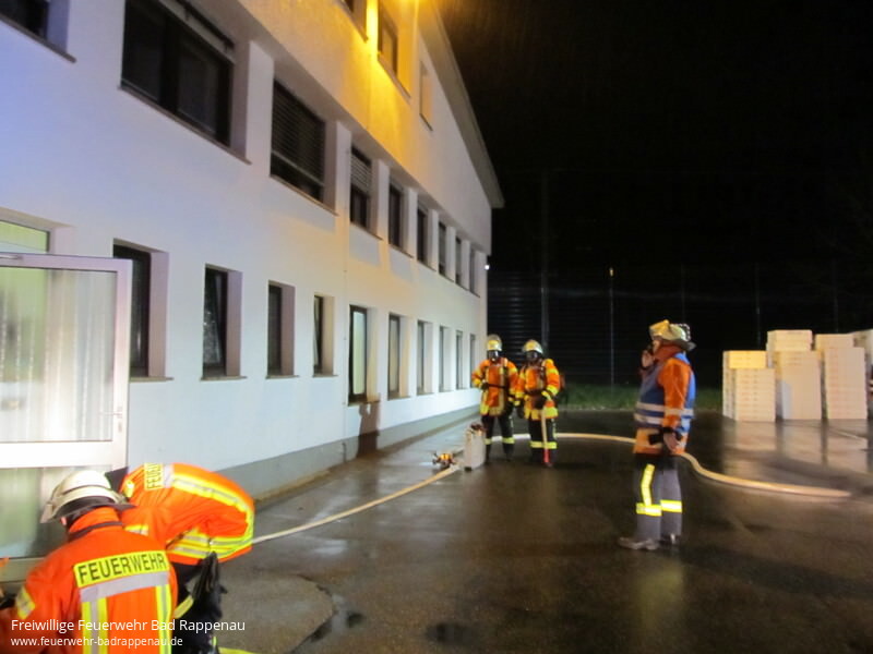 Am Mittwoch, den 05.11.2014 um 19:12 Uhr wurde die Freiwillige Feuerwehr Abt. Grombach mit dem Einsatzstichwort BMA Saint Gobain Rigips , alarmiert. Diese rückte nur wenige Minuten später mit LF- KatS aus.Bereits auf der Anfahrt wurden die Kameraden der Abteilungswehr Obergimpern mit LF zur Unterstützung alarmiert.An der Einsatzstelle angekommen stellte sich für den Gruppenführer folgende Lage dar: In den Büroräumen der Firma brach in 1. OG ein Feuer ausDurch die starke Rauchentwicklung schafften es vier Personen nicht mehr sich ins Freie zu retten.Sofort machte sich der Angriffstrupp an die Arbeit. Ausgerüstet mit Atemschutz betrat der Trupp das Gebäude, um die vermissten Personen zu suchen. Schon nach kurzer Zeit konnte der Trupp den Fund einer Person melden, die dann sofort ins Freie gebracht wurde. Der Wassertrupp machte sich dann sofort auf die weitere Suche nach den Personen.Die Abt. Obergimpern rüstet sich ebenfalls mit Atemschutz aus und unterstützte bei der Suche. So wurden die weiteren vermissten Person, ebenfalls schnell gefunden.Auch der Brand konnte schnell unter Kontrolle gebracht werden.Der Gruppenführer meldete um 20:00 Uhr Feuer schwarz. Personen gerettet. Dieses war, zum Glück, nur ein Übungsszenario bei der Hauptübung der Abteilungswehr Grombach Auf diesem Weg möchten wir uns bei allen teilnehmenden Kameraden der Feuerwehr Abt. Grombach und Obergimpern bedanken.Besonderer Dank gilt der Firma Saint Gobain Rigips , die uns ihr Gebäude zur Verfügung gestellt hatten.