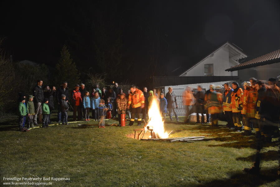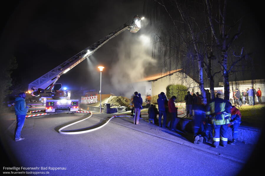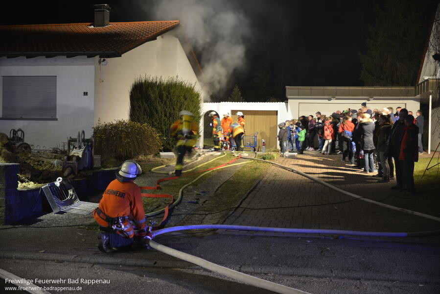 Im Rahmen des Übungsdienstes der Abt. Bad Rappenau, wurde am Freitagabend eine Einsatzübung im Birkenweg in Bad Rappenau durchgeführt. Durch die Übungsleiter wurde folgende Lage inszeniert: Ein Brandausbruch bei Arbeiten im Keller führt zu einer starken Verrauchung bis ins Erdgeschoss. Wegen des Brandes kommt es durch Unachtsamkeit zu einem Folgeband in der Küche des Erdgeschosses. Zwei Personen machen sich an einem vergitterten Fenster bemerkbar, vier weitere Personen sind im Gebäude vermisst. Die Hauseingangstür ist verschlossen.Der eingetroffene Löschzug (bestehend aus zwei Löschfahrzeugen und einer Drehleiter) begann sofort mit der Menschenrettung durch drei Trupps im Innenangriff, parallel dazu wurde das Fenstergitter entfernt um die beiden Personen am Fenster zu retten. Die Hauseingangstüre musste konstruktionsbedingt mit Spezialwerkzeug geöffnet werden. Nach kurzer Zeit konnten durch die eingesetzten Trupps alle vermissten Personen gerettet und die Brandstellen gelöscht werden. Dabei wurde auch eine Person mittels RespiHood (Fluchthaube mit Atemluft) gerettet. Die Drehleiter wurde zur Ausleuchtung und Kontrolle des Daches eingesetzt.Die zahlreichen „kleinen“ Zuschauer durften im Anschluss noch ein Lagerfeuer im Garten mit einer Kübelspritze löschen. Wir bedanken uns für das große Interesse bei der Bevölkerung und hoffen, dass wir so unsere Arbeit den Bürgern ein Stück näher bringen konnten. Ganz besonders bedanken wir uns bei der Familie Waschek für die Bereitstellung des Übungsobjektes und für die gute Verpflegung nach der Übung. Wir haben nur selten die Möglichkeit unter solchen realistischen Bedingungen zu üben.Wer in Bad Rappenau wohnt und sich für die Feuerwehr interessiert kann gerne im Feuerwehrhaus in der Raiffeisenstraße 14 vorbeischauen, wir freuen uns immer:Für Erwachsene ab 18 Jahren: ab 23.03.2015 oder ab 10.04.2015 immer um 19:30 14-tägigFür Kinder und Jugendliche ab 10 Jahren: am 25.03., 22.04., 06.05., 20.05., 17.06., 01.07., 15.07., 29.07.2015 immer um 18:30