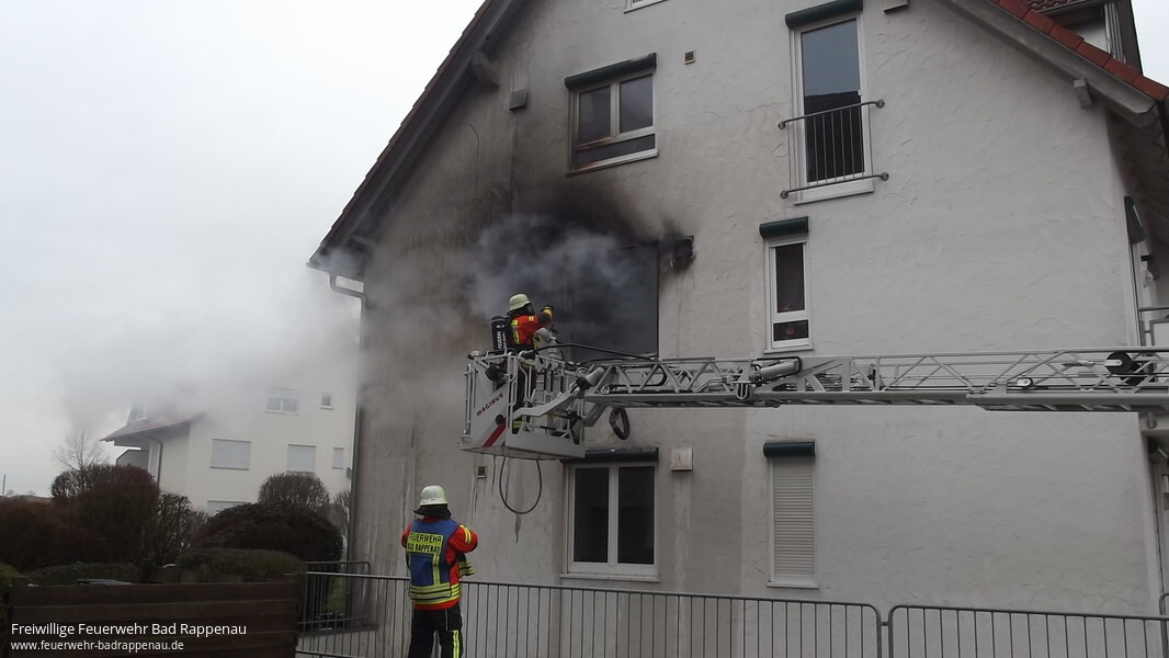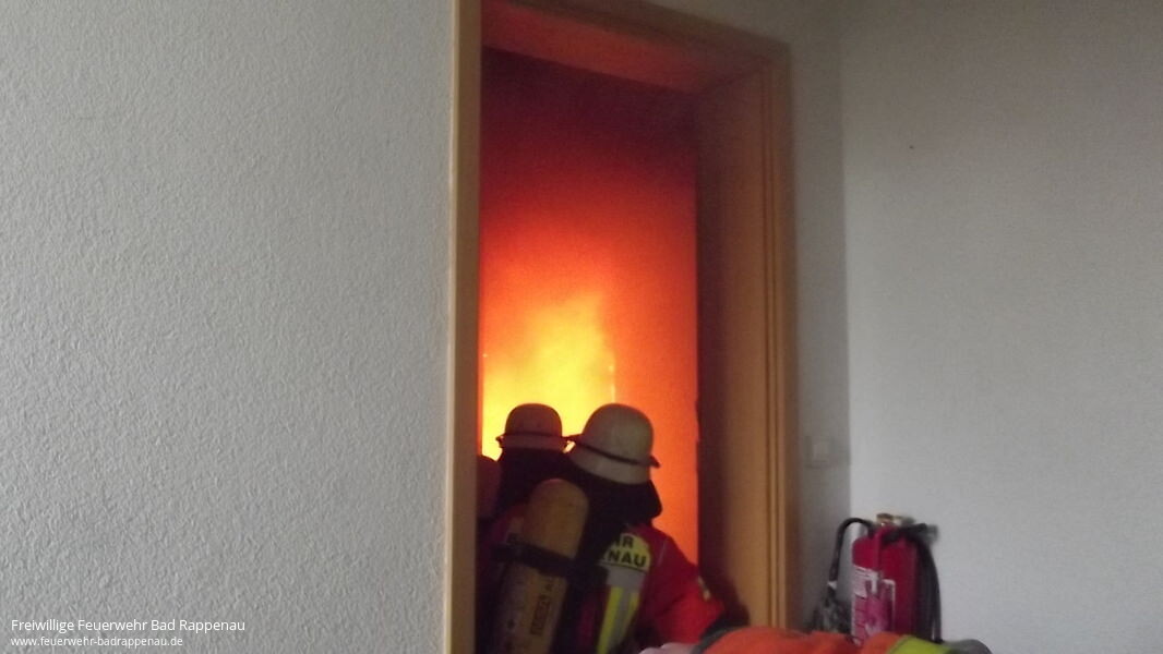 Nach Alarmierung über DME um 10:35 Uhr trafen die ersten Fahrzeuge um 10:42 Uhr an der Einsatzstelle ein. Das Feuer brach im Kinderzimmer einer Wohnung im 1 OG eines 6-Familienhauses aus. Ein Trupp unter Atemschutz war zur Brandbekämpfung über das Treppenhaus / Wohnungstüre am Brandherd eingesetzt. Aufgrund des Alarmstichwortes waren neben der Abt. Bad Rappenau auch Kameraden der Abt. Bonfeld (LF10/6) sowie der Abt. Heinsheim (ELW1) zum Einsatz alarmiert.. Die Wohnungsinhaberin und ihre beiden Kinder befanden sich zum Zeitpunkt des Brandausbruches nicht in der Wohnung. Auch alle anderen Hausbewohner konnten das Gebäude rechtzeitig verlassen, so dass niemand verletzte wurde.