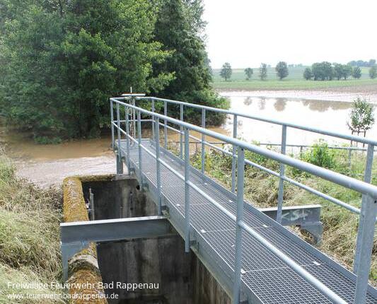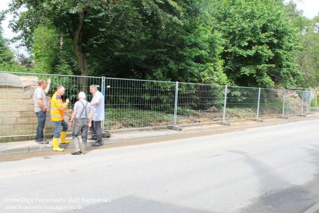 Um kurz vor 18 Uhr kracht die Schlossmauer einVon Simon Gajer / HSTDie Auswirkungen wären gravierenden gewesen, wie die Hochwasserrückhaltebecken am Tag danach zeigen. Aus ihnen fließt immer noch das Wasser ab.Wo bis Mittwochnachmittag eine Mauer das Babstadter Schlossareal begrenzt, klafft nur noch eine Dutzende Meter lange Lücke. Das Wasser hatte sich am Mittwochnachmittag hinter der Mauer gestaut, drückte langsam durch Ritzen raus und überschwemmte bereits die Ortsdurchfahrt.Werner Kolb, der gegenüber des Schlossgeländes wohnt, ahnte, dass dies nichts Gutes bedeuten kann. „Jetzt wird“s gefährlich„, erinnert er sich am Donnerstagvormittag an den Spätnachmittag zuvor. “Dann hat es einen Schlag gelassen.„Kurz vor 18 Uhr krachte die Mauer ein, das Wasser schoss über die Straße und überschwemmte die gegenüberliegenden Anwesen.Besprechung an der Ortsdurchfahrt von Babstadt: Tiefbauamtsleiter Hans-Ulrich Kretz (zweiter von links) unterhält sich unter anderem mit einem Nachbarn, dem das Wasser aus dem Schlossgelände in den Keller schwappte.Das Unwetter im Kraichgau hatte es in sich. “Ich dachte, dass es gar nicht mehr aufhört„, erzählt Werner Kolb. “Das Gewitter hat sich im Kreis gedreht.„Während in seinem Keller das Wasser nur wenige Zentimeter stand, hat es das benachbarte Grundstück von Udo Moser schlimmer getroffen. Hier stand die Brühe knapp einen Meter hoch, drückte sogar eine Garagentür ein, erzählt der Babstadter. Unter anderem war davon sein Volvo betroffen, der im Hof stand.Zwölf Stunden nach dem Schicksalsschlag stehen Türen offen, im Fußraum beim Fahrer befindet sich noch immer eine Pfütze.Besprechung an der Ortsdurchfahrt von Babstadt: Tiefbauamtsleiter Hans-Ulrich Kretz (zweiter von links) unterhält sich unter anderem mit einem Nachbarn, dem das Wasser aus dem Schlossgelände in den Keller schwappte.