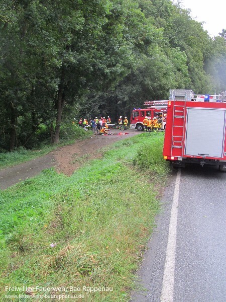 Die Feuerwehr Bad Rappenau mit den Abtlg. Bad Rappenau, Bonfeld und Fürfeld wurden um 18:09 Uhr zu einem Verkehrsunfall auf die L1107 zwischen Bonfeld und Bad Wimpfen alarmiert. Beim Eintreffen der ersten Kräfte musste noch eine Person aus dem Unfallfahrzeug gerettet werden. Die weiteren drei Fahrzeuginsassen konnten sich selbst aus dem Fahrzeug befreien und mussten bis zum Eintreffen des Rettungsdienstes betreut und versorgt werden. Die Feuerwehr Bad Rappenau war mit 5 Fahrzeugen im Einsatz. Der Rettungsdienst war mit 4 Rettungswagen und 2 Notarteinsatzfahrzeugen vor Ort.