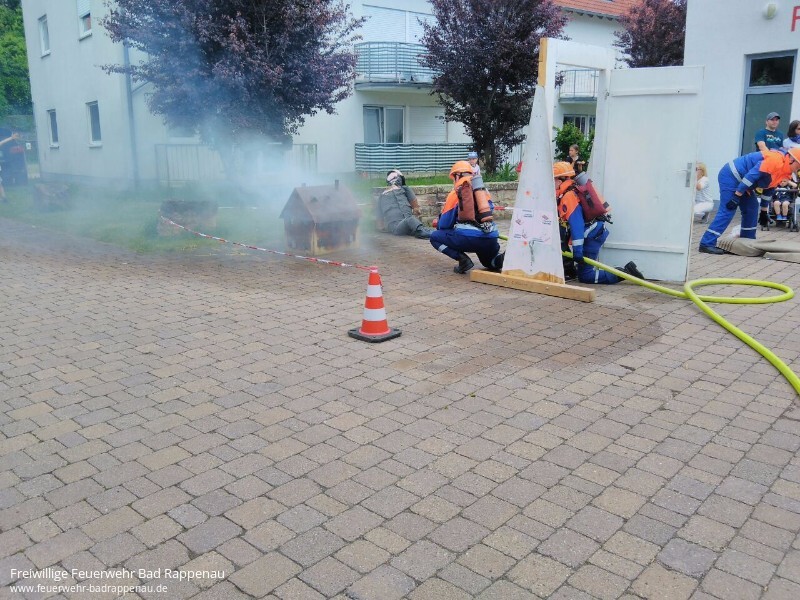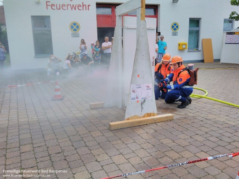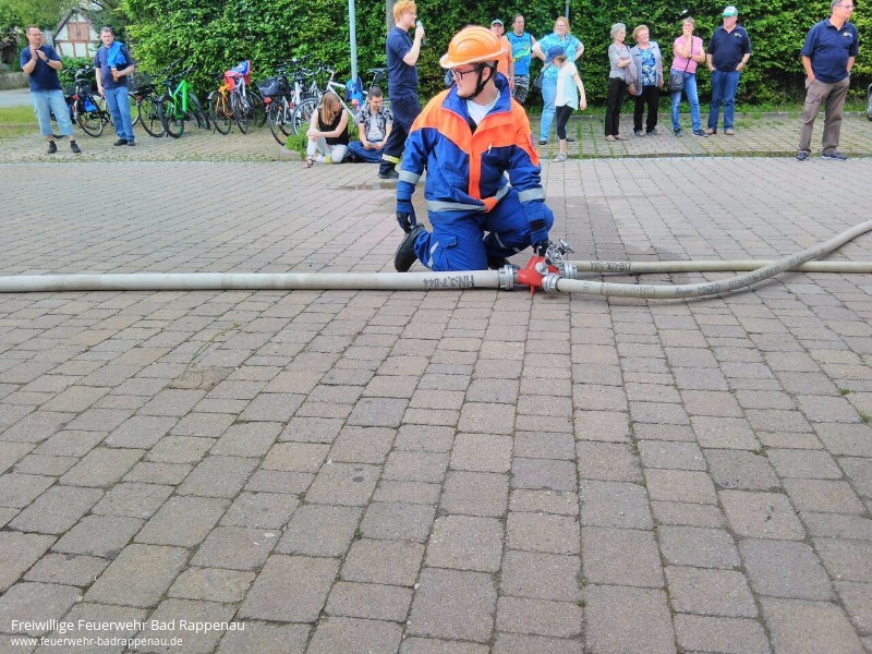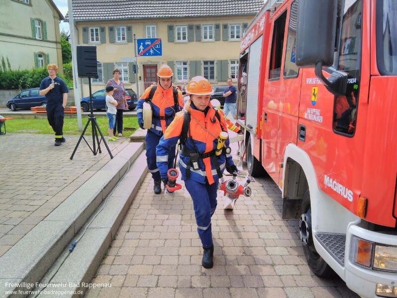 Am Donnerstag den 25.05.2017, beim Vatertagsfest der Abt. Treschklingen präsentierte sich die Jugendfeuerwehr Abt. Süd Jugendgruppe A mit einer Showübung. Bei bestem Wetter zeigten die Jugendlichen den Ablauf eines Innenangriffs, dabei verwendete der Angriffstrupp selbstgebaute Übungsatemschutzgeräte. Einsatzstichwort lautet: „Wohnungsbrand mit Vermisster Person“. Vollausgerüstet mit Handlampe, Leinenbeutel, Funkgerät und Atemschutzgerät, machte sich der Angriffstrupp auf den Weg zur Wohnungstür. Der Wassertrupp stellte die Wasserversorgung sicher und machte sich auf den Weg eine Riegelstellung aufzubauen. Der Schlauchtrupp kümmerte sich um die Verkehrsabsicherung und stellte Sanitätsgerät für die vermisste Person bereit. Der Angriffstrupp zeigte an der Wohnungstüre wie eine Türprozedur und eine Bekämpfung des Innenraums vor sich geht. Im Wohnungsraum brannte ein Puppenhaus, nach der Brandbekämpfung wurde die vermisste Person aus dem Gefahrenbereich gebracht und dem Rettungsdienst übergeben.Die Jugendfeuerwehr übte die Showübung an 4 Übungsabenden, davon waren 2 als zusätzliche Übungstermine angesetzt. Allen Jugendlichen ein herzlichen Dankeschön für die Bereitschaft solche eine Showübung einzuüben. Bildet dies doch die Grundlage für die Leistungsspange oder später für das Leistungsabzeichen. Die Jugendfeuerwehr Abt. Süd Jugendgruppe A ging mit folgender Besatzung an den Start:Gruppenführer: Alexander SzymanskiMaschinist: Oliver FreyerMelder: Fabian MichelbachAngriffstrupp: Monique Lilli, Pascal GrafWassertrupp: Valerie Reitz, Marvin DörzbachSchlauchtrupp: Tim Graf, Stefan ReinhardtDes weiteren einen herzlichen Dank an Nicole Graf, Sie unterstützte uns mit ihren Nähkünsten bei dem Umbau der Atemschutzgeräte. Ein besonderen Dank gilt auch Pascal Graf der sich als Jfw-Mitglied die Showübung größten Teils ausgedacht hatte, die Jugendbetreuer Alexander Szymanski und Mathias Borth waren nur unterstützend bei der Umsetzung dabei.