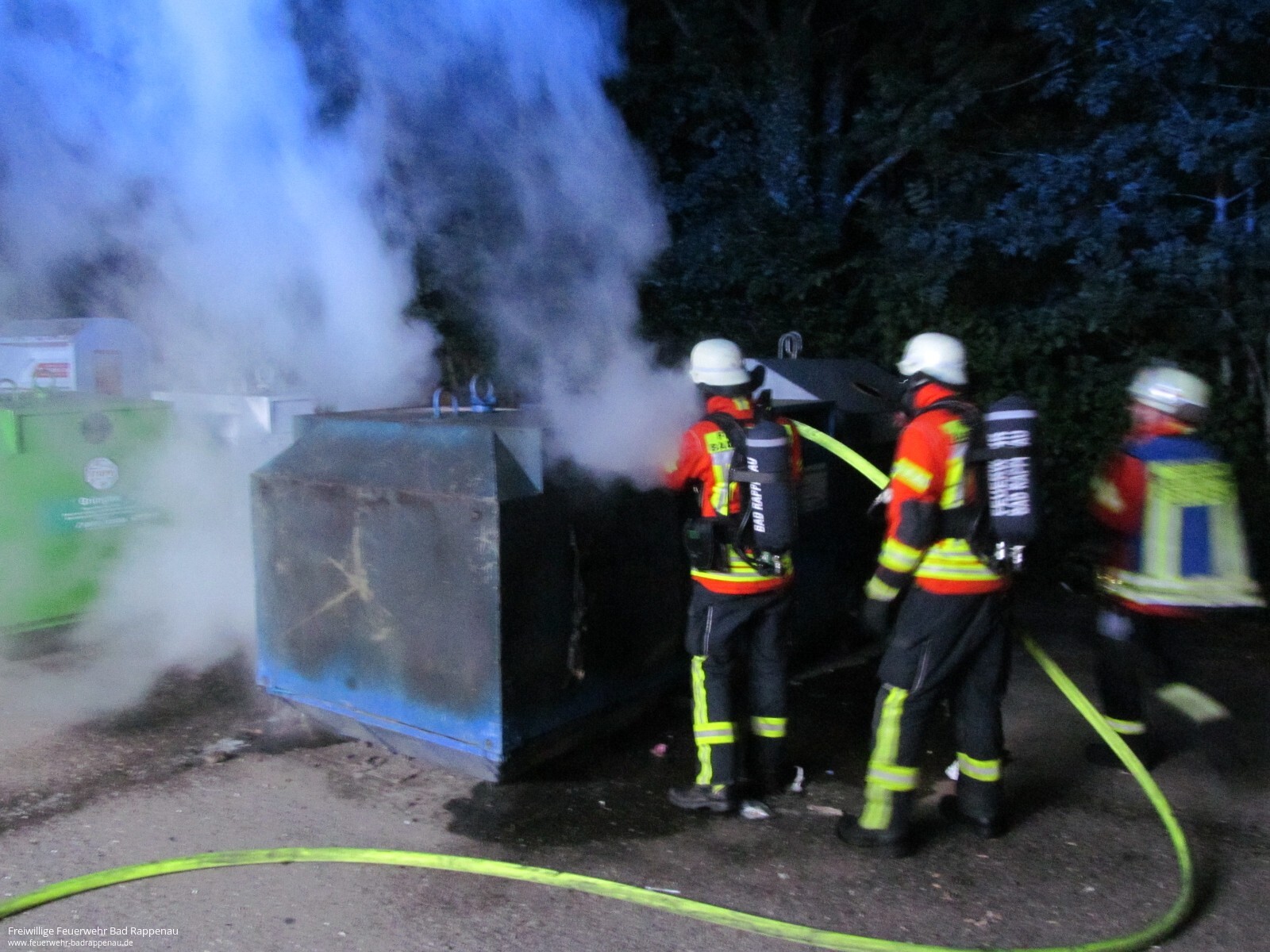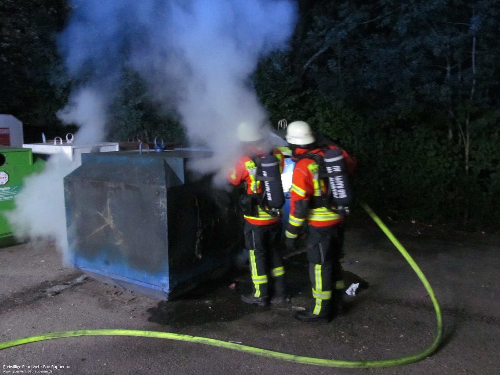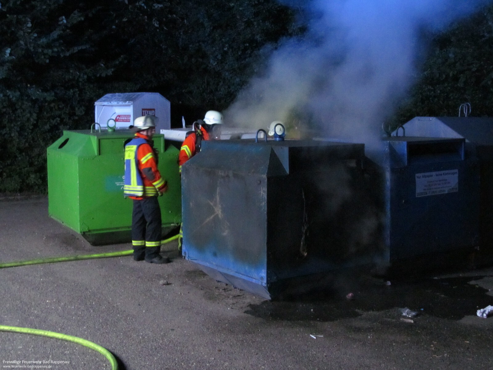 Mit dem Alarmstichwort „Kleinbrand“ wurde die Freiwillige Feuerwehr Bad Rappenau am frühen Morgen alarmiert. Vor Ort brannte ein Altpapiercontainer. Ein Trupp unter Atemschutz konnte den Brand mittels eines C-Strahlrohres schnell bekämpfen. Um ein erneutes Entfachen des Containers zu verhindern, wurde zusätzlich mit Schaum gearbeitet. Die Abteilung Bad Rappenau war mit 2 Fahrzeugen und 9 Mann im Einsatz.