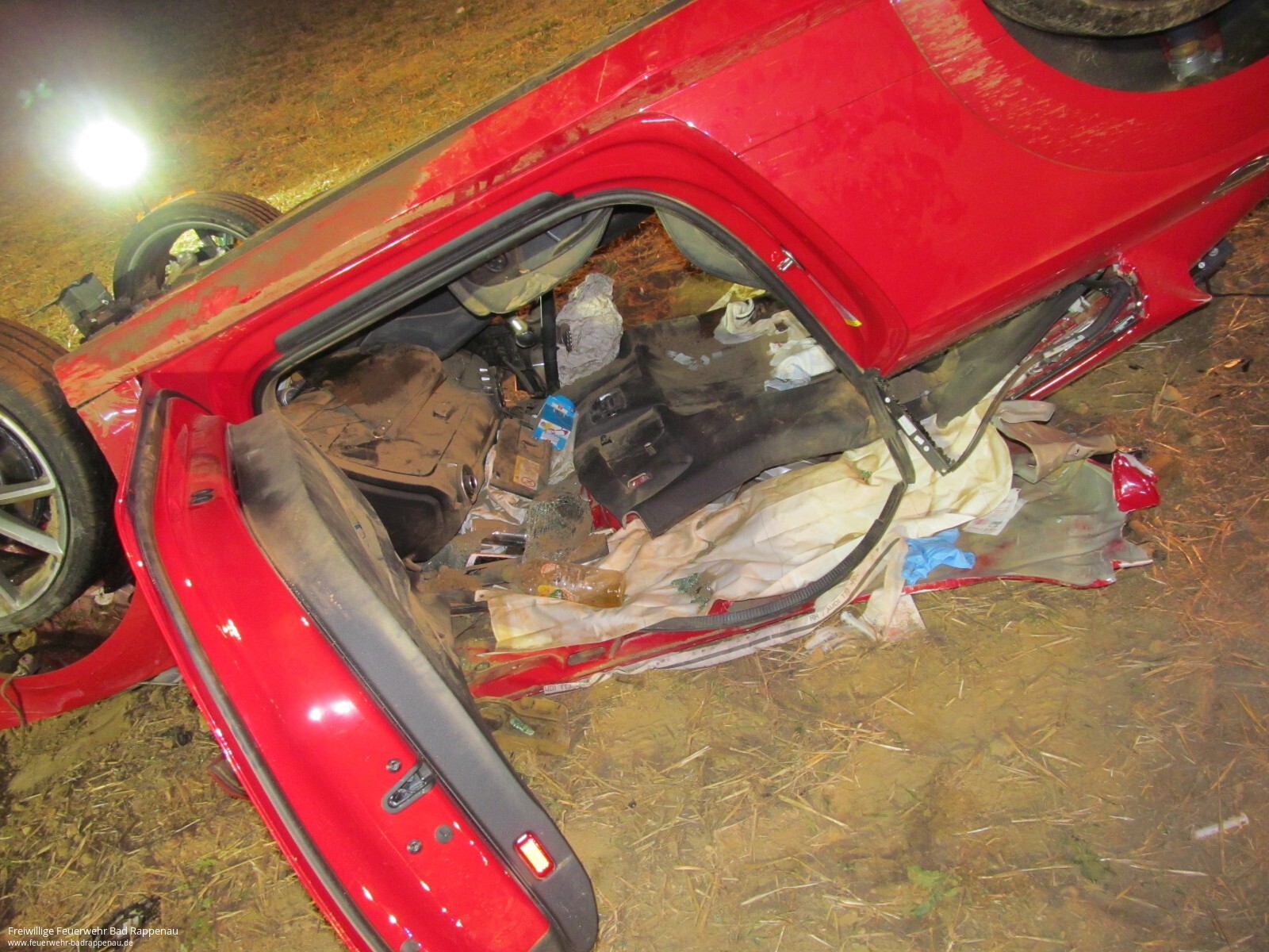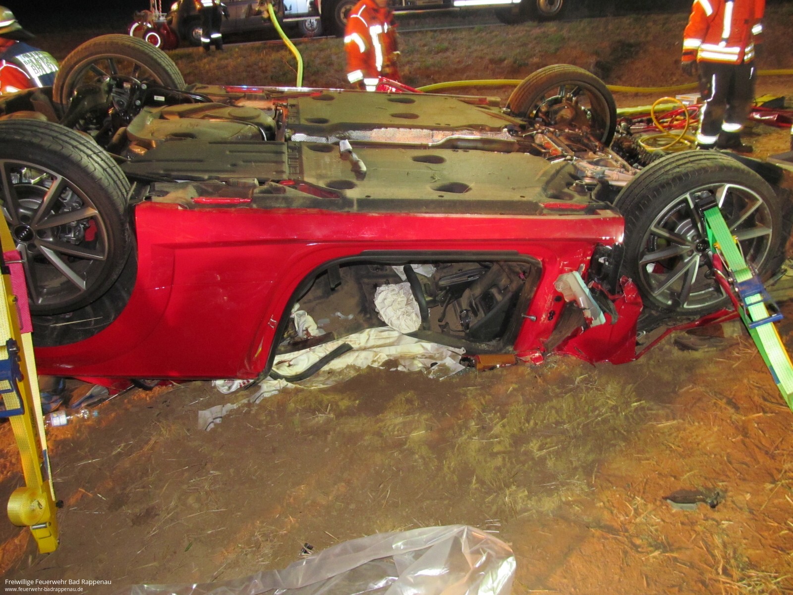 Mit dem Alarmstichwort „Verkehrsunfall PKW“ wurden die Freiwilligen Feuerwehren Bad Rappenau und Siegelsbach auf die K2043 alarmiert. Ein 20-Jähriger fuhr mit seinem Audi zwischen Siegelsbach und Babstadt, als der Wagen nach rechts von der Straße abkam, über einen Gemeindeverbindungsweg schanzte, nach 20 Meter mit der Front in einem Acker einschlug und nach weiteren 30 Meter auf dem Dach liegen blieb. Der junge Mann erlitt hierbei schwere, seine 15-jährige Beifahrerin leichte Verletzungen. Beim Eintreffen der Feuerwehr wurde die Beifahrerin bereits von Ersthelfern betreut, der Fahrer befand sich noch im verunfallten Fahrzeug. Die Feuerwehr stabilisierte den PKW, stellte den Brandschutz sicher und befreite den 20-Jährigen mithilfe von hydraulischem Rettungsgerät unter enger Absprache mit dem Rettungsdienst. Die Freiwillige Feuerwehr Bad Rappenau war mit 3 Fahrzeugen und 15 Mann im Einsatz.