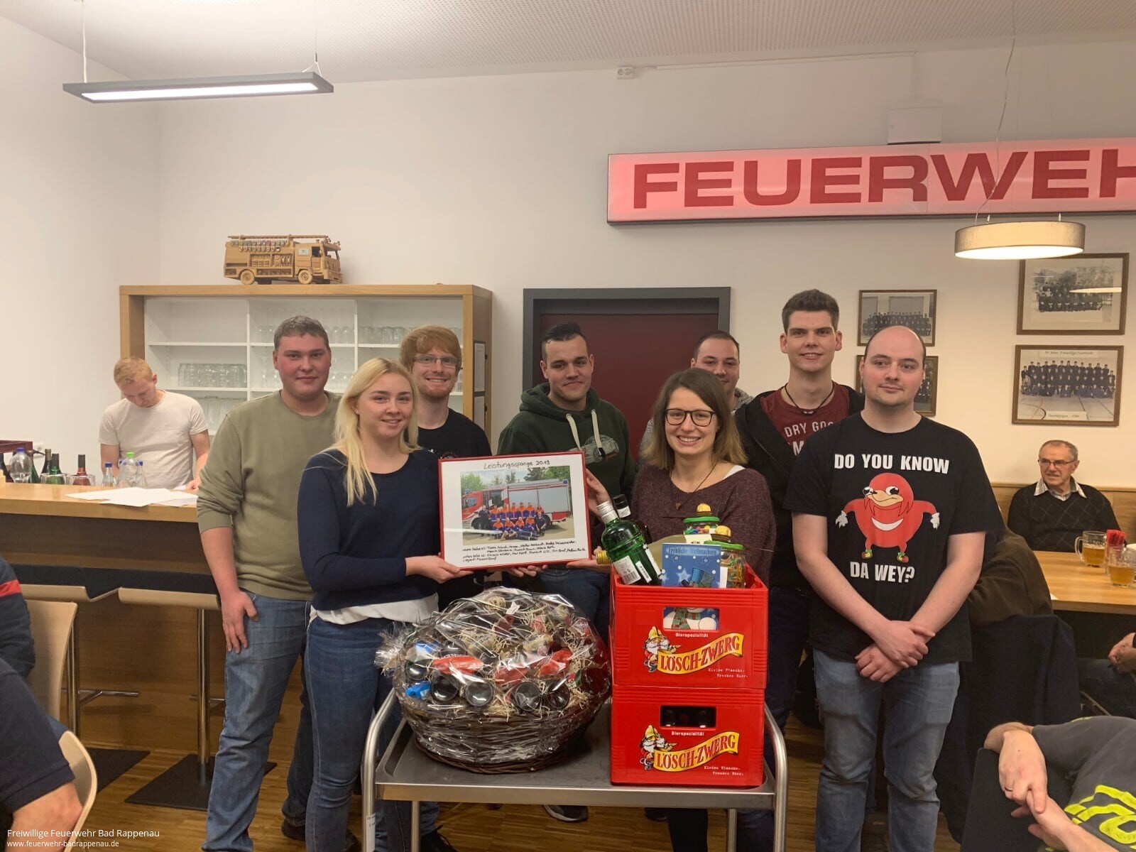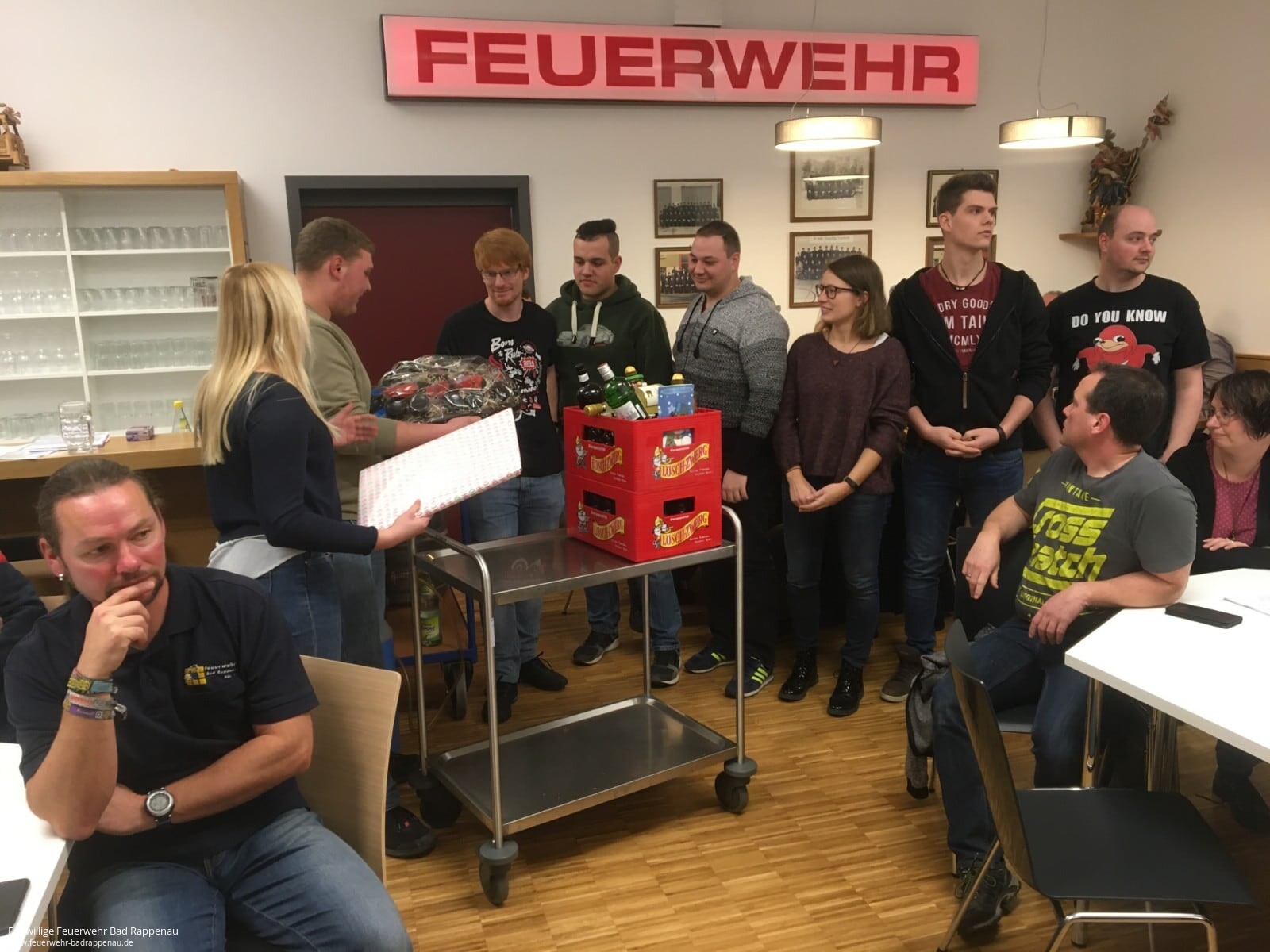 Am 20.12.2019 traf sich die Abteilung Süd der Freiwilligen Feuerwehr Bad Rappenau ein letztes Mal vor dem Jahreswechsel zu einer Gemeinsamen Übung und Feier. Mit der Jugendfeuerwehr und der Altersmannschaft der Abteilung Süd veranstaltete die Einsatzabteilung einen gemeinsamen Jahresabschluss. Die Feier stand unter dem Motto des heiligen Sankt Florian, welcher der Schutzpatron der Feuerwehr ist. Von ihm gibt es auch eine Holzstatur, welche aus der Abteilung Bonfeld mit umgezogen wurde und über der Eckbank einen neuen Platz gefunden hat.Die Übung bestand aus einer UVV Unterweisung von Axel Klumbach. Es wurde im Besonderen auf die Feuerwehrzufahrt, das Verhalten im Feuerwehrhaus sowie das Verhalen im Einsatzfall eingegangen. Danach stellte stellvertretender Abteilungskommandant Tobias Mayer die von dem Abteilungsausschuss erarbeitete Hausordnung vor.Abteilungskommandant Frank Rieth ging noch auf aktuelle Themen ein, wie beispielsweise die vergangenen Einsätze auf der Autobahn und die anstehenden Begehungen des Hotels BestWestern und der Firma Wista im Buchäckerring. Nach einer Diskussionsrunde über Einsätze auf der Autobahn Richtung Heilbronn und das Verhalten im Einsatzfall, wenn kein Gruppenführer verfügbar ist ging es in den geselligen Teil der Veranstaltung über. Als Vesper gab es unter anderem die am Schlachtfest im November selbst produzierte Wurst.Im Rahmen der Veranstaltung wurde von Carolin Wagenbach und René Hertlein die bestellte Freizeitkleidung ausgegeben. Ein großer Dank geht speziell an die Raiffeisenbank Böllingertal, welche jedem Mitglied der Einsatzabteilung ein T-Shirt spendete.