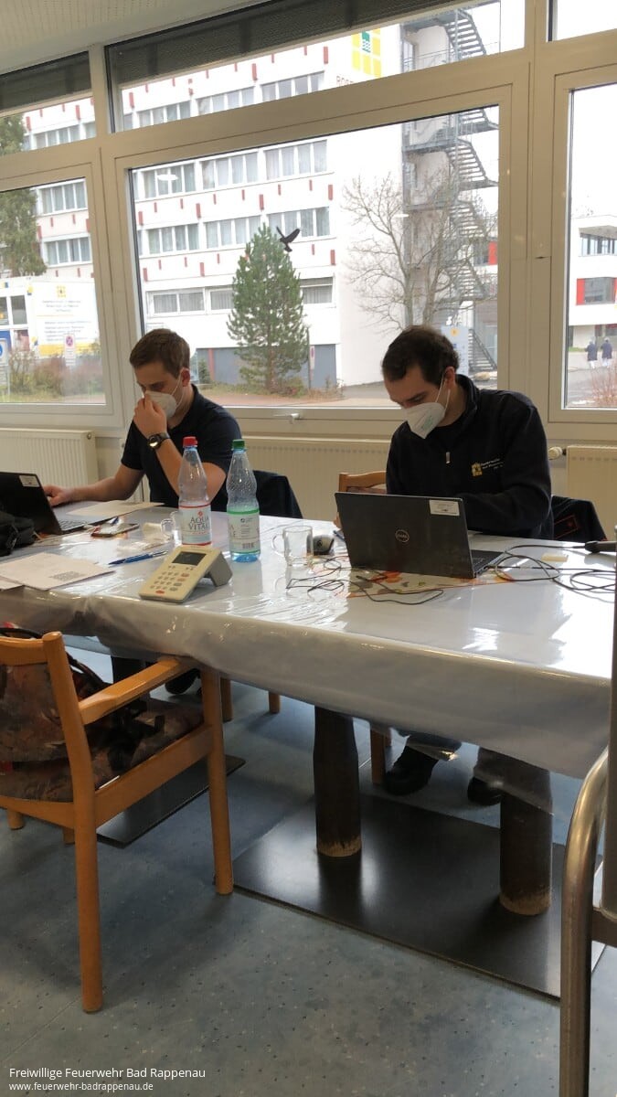 Am Sonntag den 07.02.2021 unterstützte die Freiwillige Feuerwehr Bad Rappenau das Kreisimpfzentrum aus Ilsfeld bei dem Stellen des Mobilen Impfteams, welches an diesem Tag in Bad Rappenau, im Seniorenstift am Park, 132 Personen mit der ersten Impfung gegen Covid-19 versorgen konnte.Die Feuerwehr übernimmt bei dem Mobilen Impfteam den Transport der Ausrüstung, des Impfstoffs und der weiteren Teammitglieder. Morgens traf sich das Mobile Impfteam im Kreisimpfzentrum in Ilsfeld. Hatte man keinen gültigen Corona negativ Test, so wurde vor Ort zu Beginn ein Corona-Schnelltest durchgeführt. Nach einer kurzen Besprechung mit dem Landratsamt über das Vorgehen, fuhr das Team gemeinsam, mit dem MTW 10/19-1, der Abteilung Süd und einem weiteren MTW der Freiwilligen Feuerwehr Nordheim, mit dem Impfstoff und der weiteren Ausrüstung nach Bad Rappenau.Neben dem Transport des Mobilen Impfteams unterstützte die Feuerwehr auch bei der Dokumentation der durchgeführten Impfungen. Die durchgeführten Impfungen werden alle digital über ein Spezielles Programm abgespeichert. So kann unter anderem für die Planung der zweiten Impfung leichter nachvollzogen werden, wann dies für welche Person fällig ist. Zusätzlich zu den Zeiten, wann die Impfung durchgeführt wurde werden auch die Anamnese Einwilligungen in diesem Zuge digitalisiert. Als rückfallebene werden die entsprechenden Informationen aktuell auch noch auf Papier dokumentiert.Alle Personen welche die erste Impfung gegen Covid-19 bekommen haben, erhalten einen Eintrag in Ihren Impfpass. Sollte kein Impfpass vorhanden sein, wird eine Impfbestätigung für die erste Impfung ausgestellt. Diese enthält ebenfalls die Informationen über den Tag der Impfung, den Genauen Impfstoff mit Chargennummer und den verantwortlichen Arzt. Auch dabei unterstützte die Feuerwehr.Als am Nachmittag die Impfungen und die entsprechende Dokumentation abgeschlossen war fuhr das Mobile Impfteam wieder zurück in das Kreisimpfzentrum in Ilsfeld. Dort wurde abschließend noch die Ausrüstung, für den nächsten Einsatz, des Mobilen Impfteams, wieder bereit gemacht.