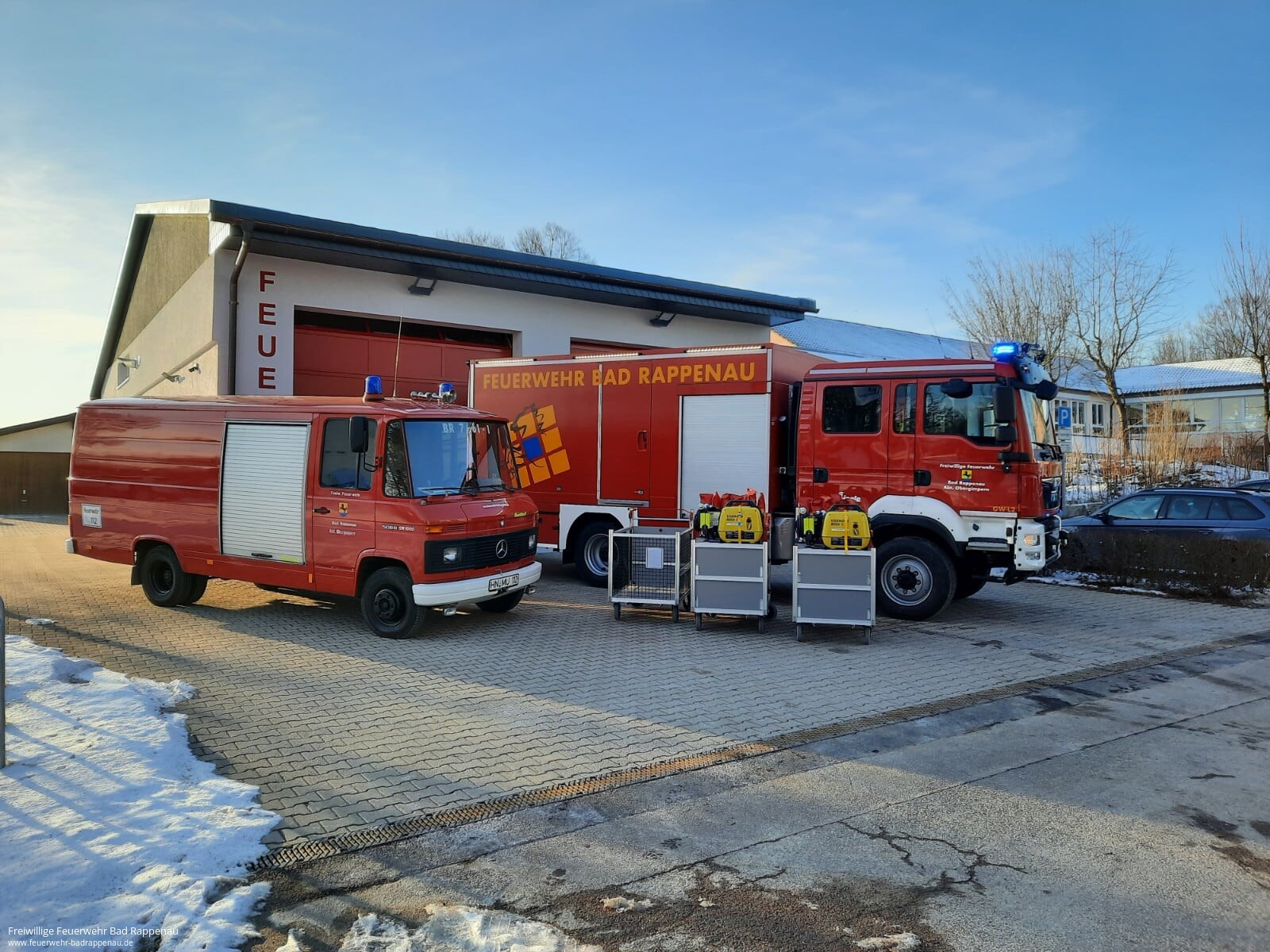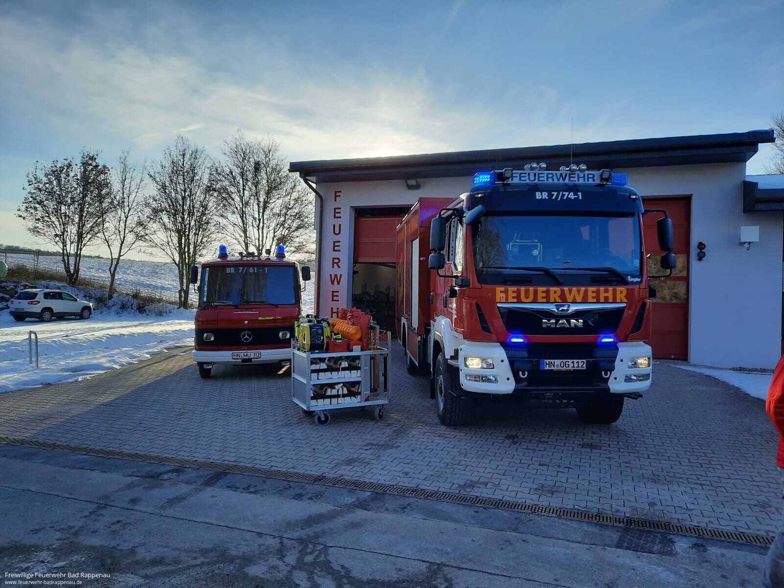Die Abteilung Obergimpern konnte am Freitag, 12.02.2021, eins von zwei neuen Fahrzeugen, die im Zuge von Ersatzbeschaffungen angeschafft werden, in Empfang nehmen.Für den über 35 Jahre alten (Bj. 1985) SW 1000 wurde ein GW-L2 ausgeschrieben, der nach fast dreijähriger Projektzeit am Freitag auf den Hof des neu umgebauten Feuerwehrhauses in Obergimpern rollte.Der Aufbauhersteller Ziegler hat den Nachfolger des alten Schlauchwagen auf einem MAN 13.290 Fahrgestell gefertigt. Nach einer zweitägigen Abnahme durch den Abteilungskommandanten Jochen Strehlow, Gerätewart der Abteilung Manfred Stattelmann und dem Kommandanten der Bad Rappenauer Feuerwehr Felix Mann im Ziegler-Werk in Rendsburg, wurde das Fahrzeug auf eigener Achse ca. 730km nach Obergimpern überführt.Wie auf den Bildern zu erkennen ist, vollzieht diese Beschaffung für die Abteilung Obergimpern und damit für die gesamte Feuerwehr Bad Rappenau einen Quantensprung. So sind beispielsweise auf dem neuen Fahrzeug nunmehr doppelt so viele B-Schläuche (2000 Meter anstatt 1000 Meter) vorgekuppelt gelagert und können im Fahrbetrieb verlegt werden.Bevor der GW-L 2 jedoch in Dienst gestellt werden kann, steht eine ausführliche Einweisung sowie anschließender intensiver Übungsbetrieb (unter Pandemiebedingungen) an. Daher hieß es nach der Begrüßung für die Abteilung auch schon wieder „Abschied nehmen“. Bis zum Abschluss der Einweisungen und Übungen wird das Fahrzeug aus Platzgründen vorübergehend im Feuerwehrhaus der Abteilung Süd untergestellt und der bisherige SW 1000 bleibt in Obergimpern im Dienst.Wir stellen das Fahrzeug zur tatsächlichen Indienststellung dann nochmal ausführlich aus.Die Arbeit zum Thema Fahrzeugbeschaffung geht für die Abteilung aber weiter. Für das ebenfalls in die Jahre gekommene Löschfahrzeug der Abteilung befindet sich aktuell ein Nachfolger in der Ausschreibung.