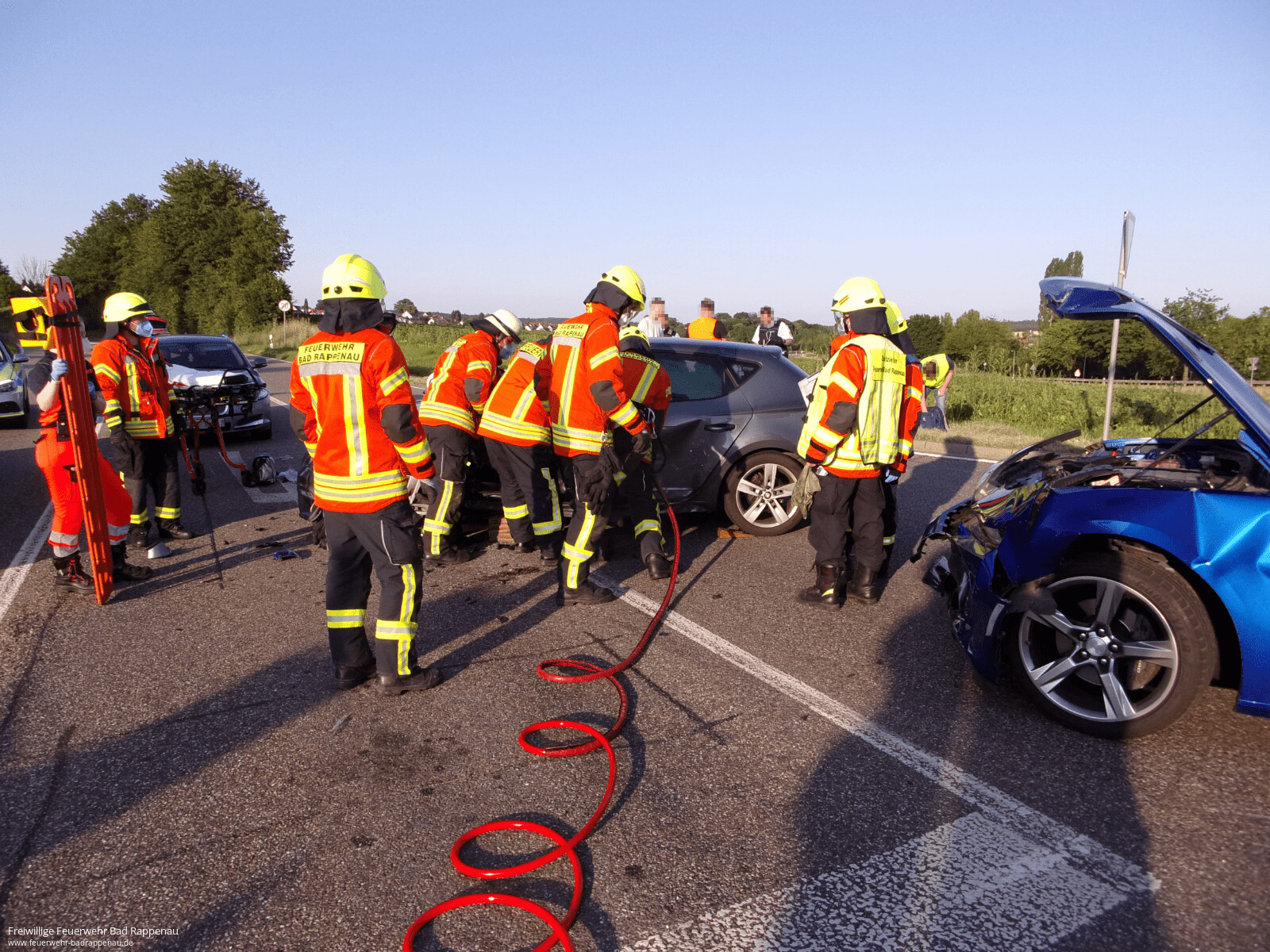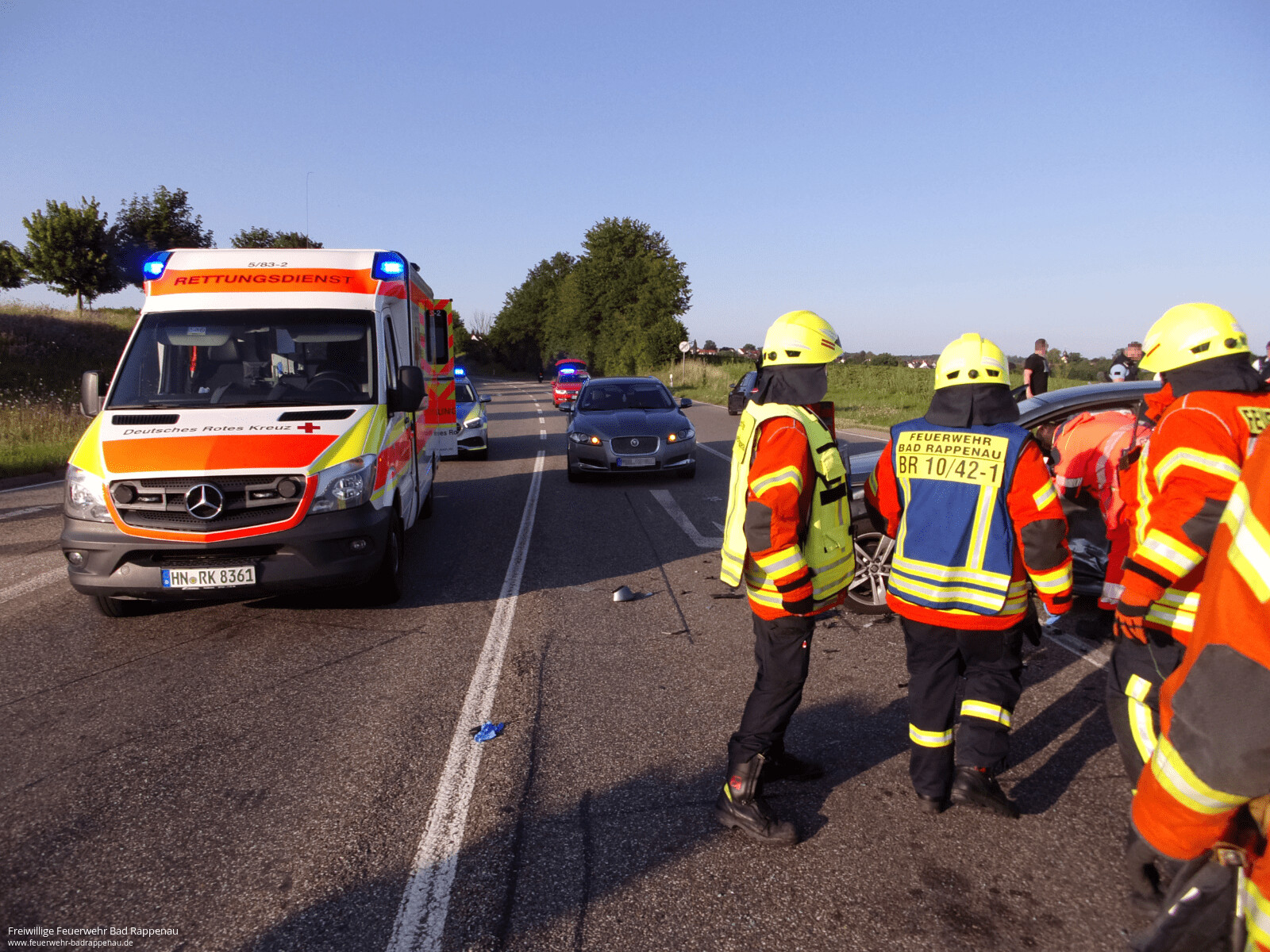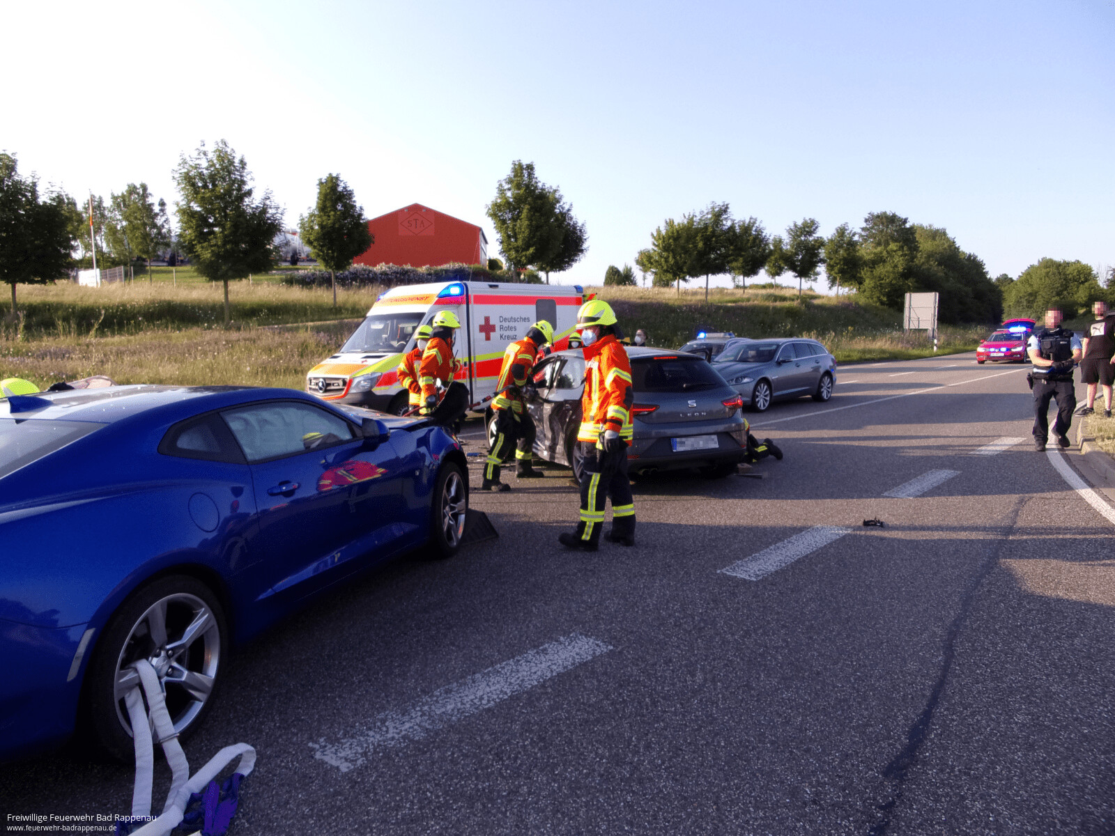 Mit dem Alarmstichwort „Unterstützung Rettungsdienst“ wurde die Abteilung Süd zu einem Verkehrsunfall auf dem Autobahnzubringer alarmiert. Hier waren ein Seat und ein Chevrolet aus bislang unbekannter Ursache kollidiert. Vor Ort wurden die Personen bereits vom Rettungsdienst und Notarzt medizinisch versorgt. Um den Fahrer des Seats so schonend wie möglich aus dem verunfallten PKW zu befreien, wurden die beiden Türen des Fahrzeuges mithilfe von schwerem hydraulischem Rettungsgerät entfernt. Nach der Rettung aus dem Fahrzeug wurde der Patient dem Rettungsdienst übergeben. Außerdem sicherte die Feuerwehr die Einsatzstelle und klemmte die Batterien ab. Die Freiwillige Feuerwehr Bad Rappenau war mit 3 Fahrzeugen und 13 Mann im Einsatz.