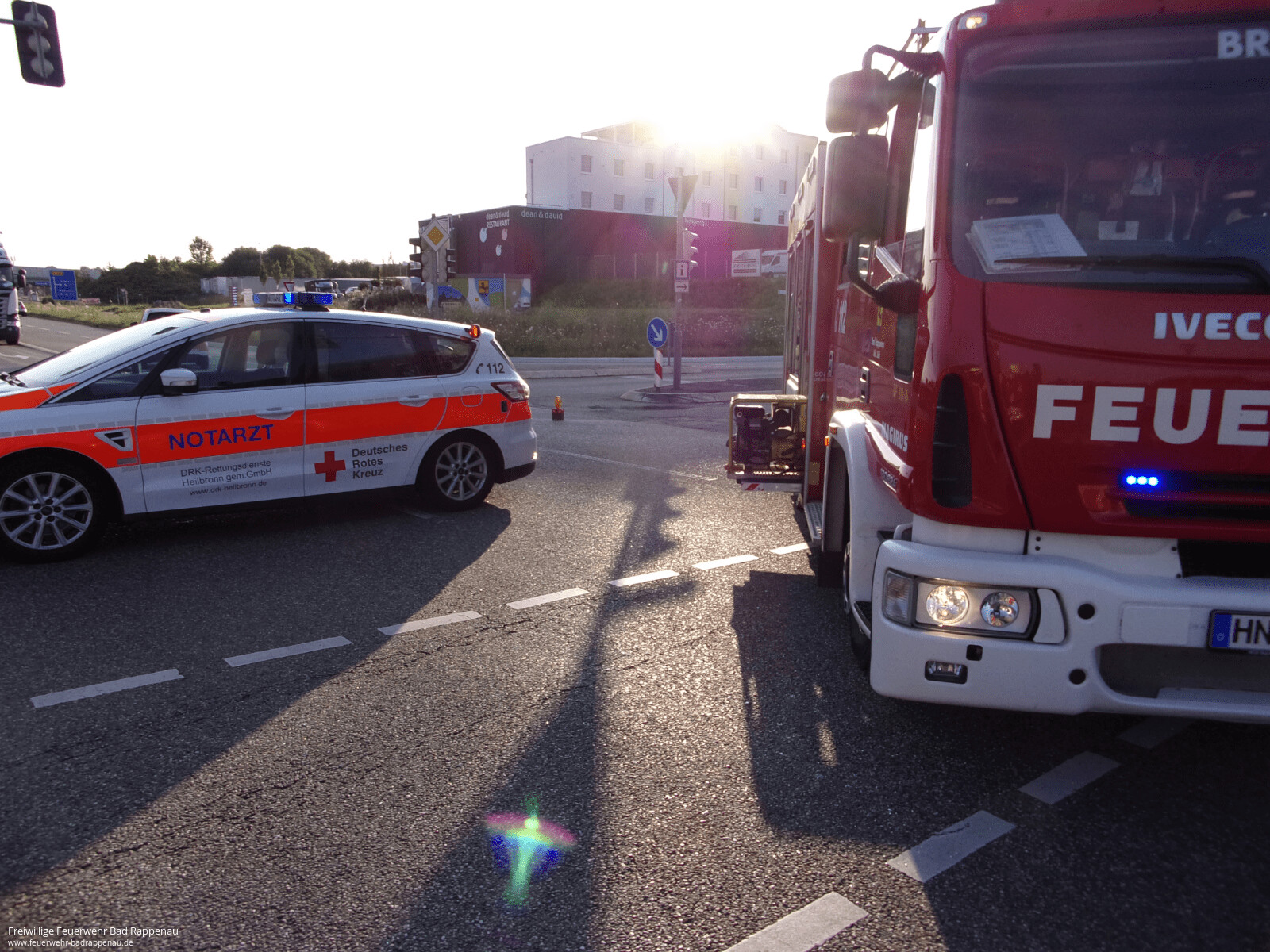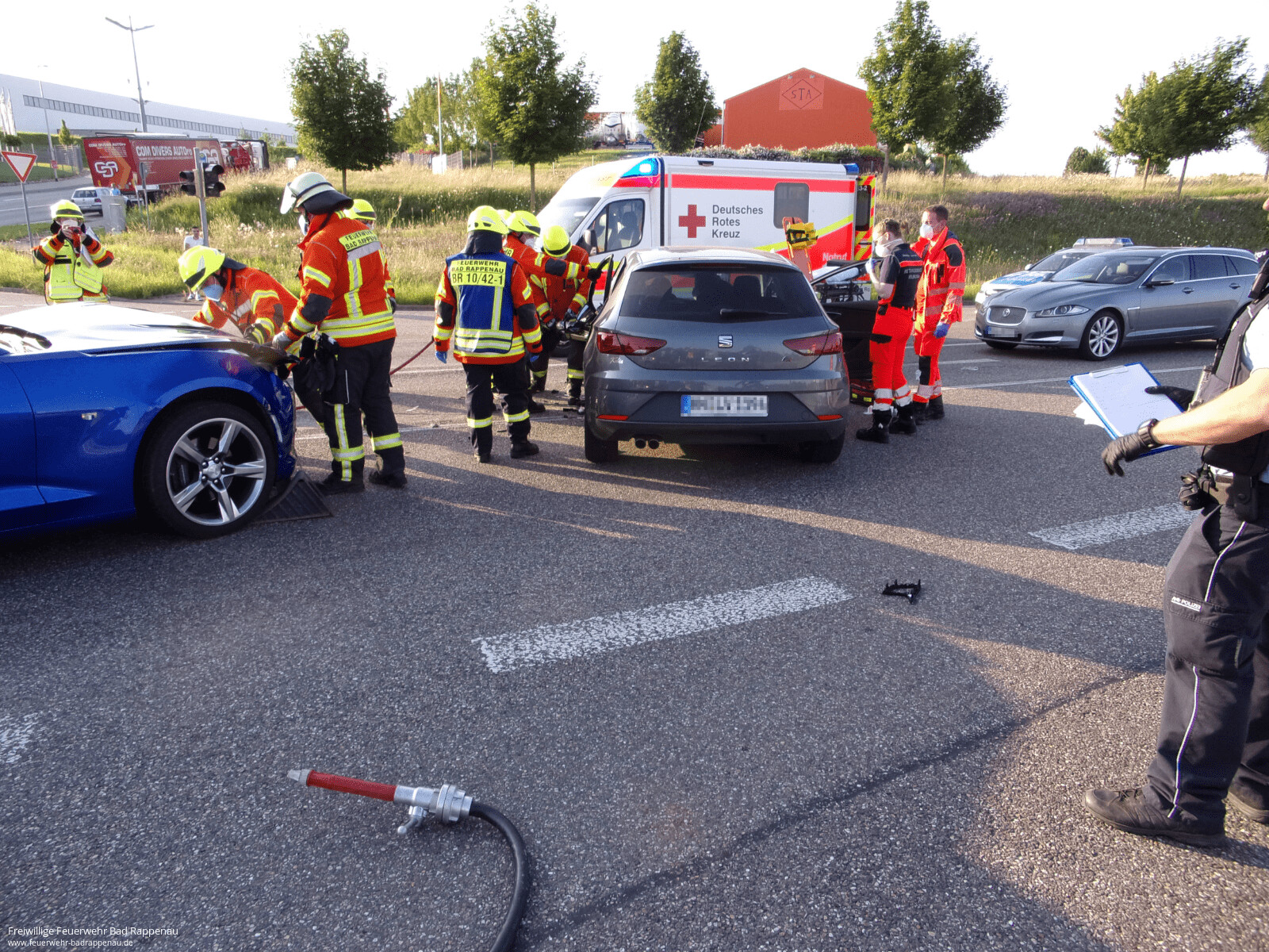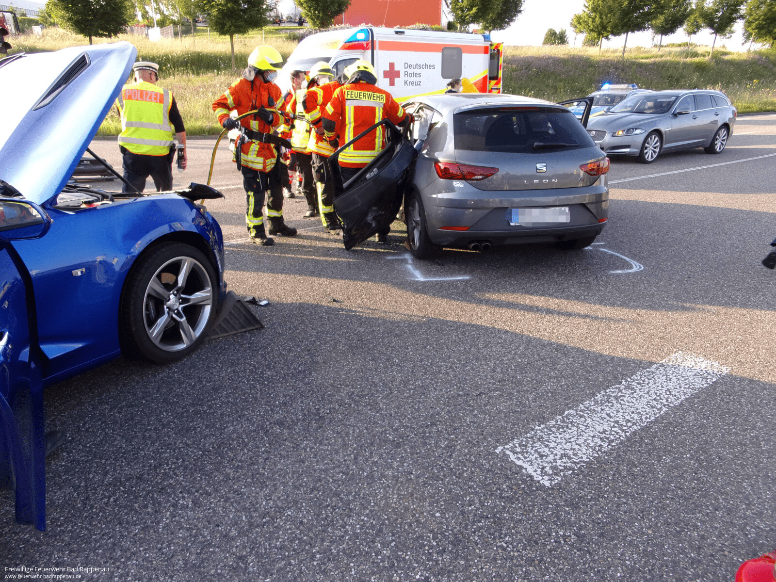 Mit dem Alarmstichwort „Unterstützung Rettungsdienst“ wurde die Abteilung Süd zu einem Verkehrsunfall auf dem Autobahnzubringer alarmiert. Hier waren ein Seat und ein Chevrolet aus bislang unbekannter Ursache kollidiert. Vor Ort wurden die Personen bereits vom Rettungsdienst und Notarzt medizinisch versorgt. Um den Fahrer des Seats so schonend wie möglich aus dem verunfallten PKW zu befreien, wurden die beiden Türen des Fahrzeuges mithilfe von schwerem hydraulischem Rettungsgerät entfernt. Nach der Rettung aus dem Fahrzeug wurde der Patient dem Rettungsdienst übergeben. Außerdem sicherte die Feuerwehr die Einsatzstelle und klemmte die Batterien ab. Die Freiwillige Feuerwehr Bad Rappenau war mit 3 Fahrzeugen und 13 Mann im Einsatz.