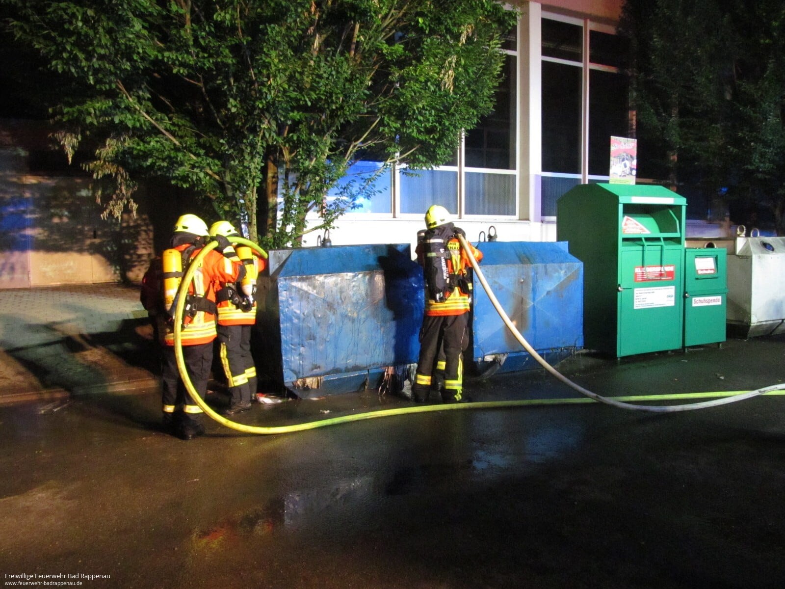 Mit dem Alarmstichwort „Kleinbrand“ wurden die Abteilungen Babstadt und Bad Rappenau alarmiert. Vor der Sporthalle im Ortsteil Babstadt brannten zwei Altpapiercontainer. Der Brand konnte mit zwei Trupps unter Atemschutz und unter Vornahme zweier C-Rohre schnell abgelöscht werden. Die Feuerwehr Bad Rappenau war insgesamt mit 3 Fahrzeugen und 14 Einsatzkräften im Einsatz.