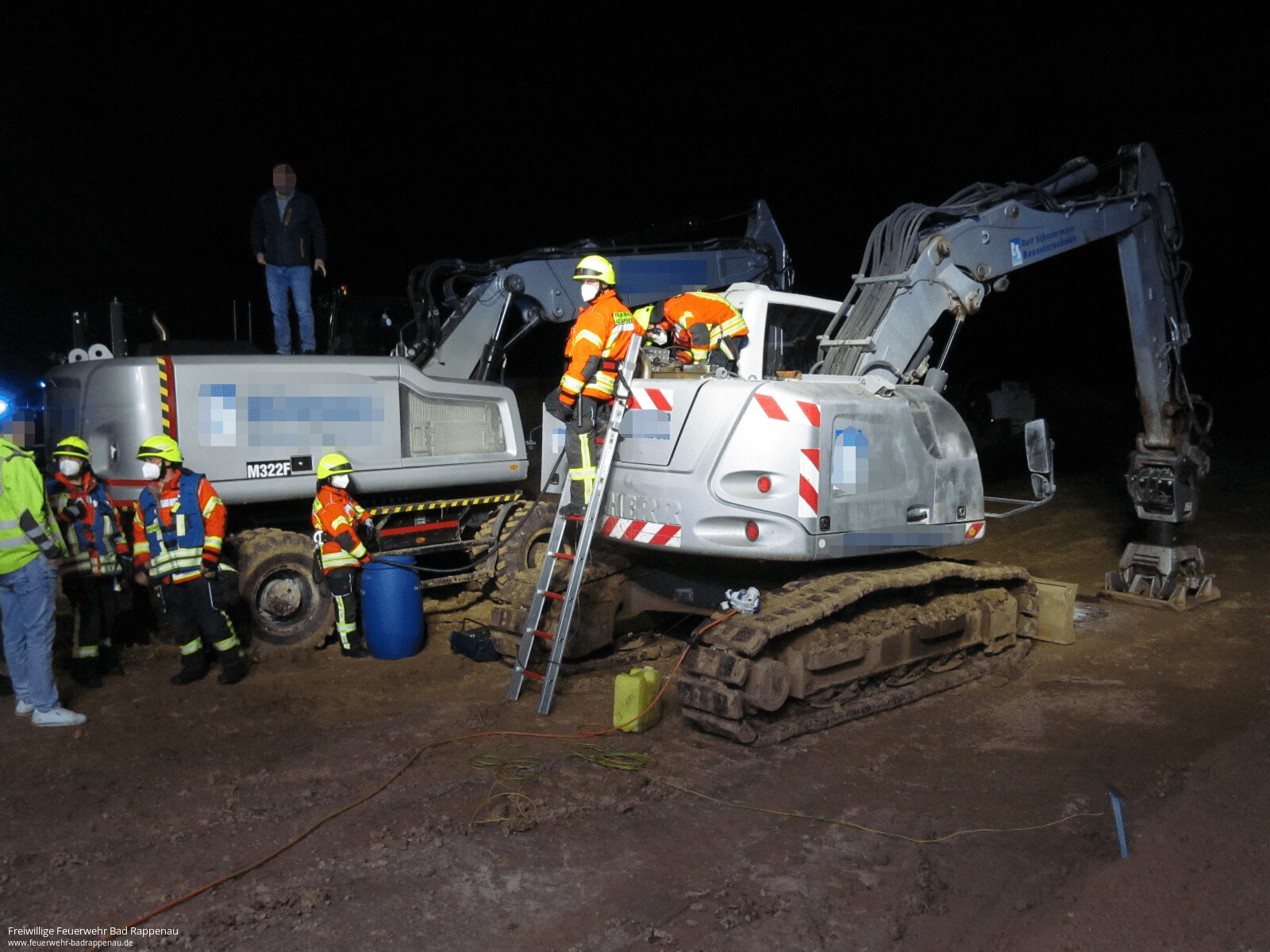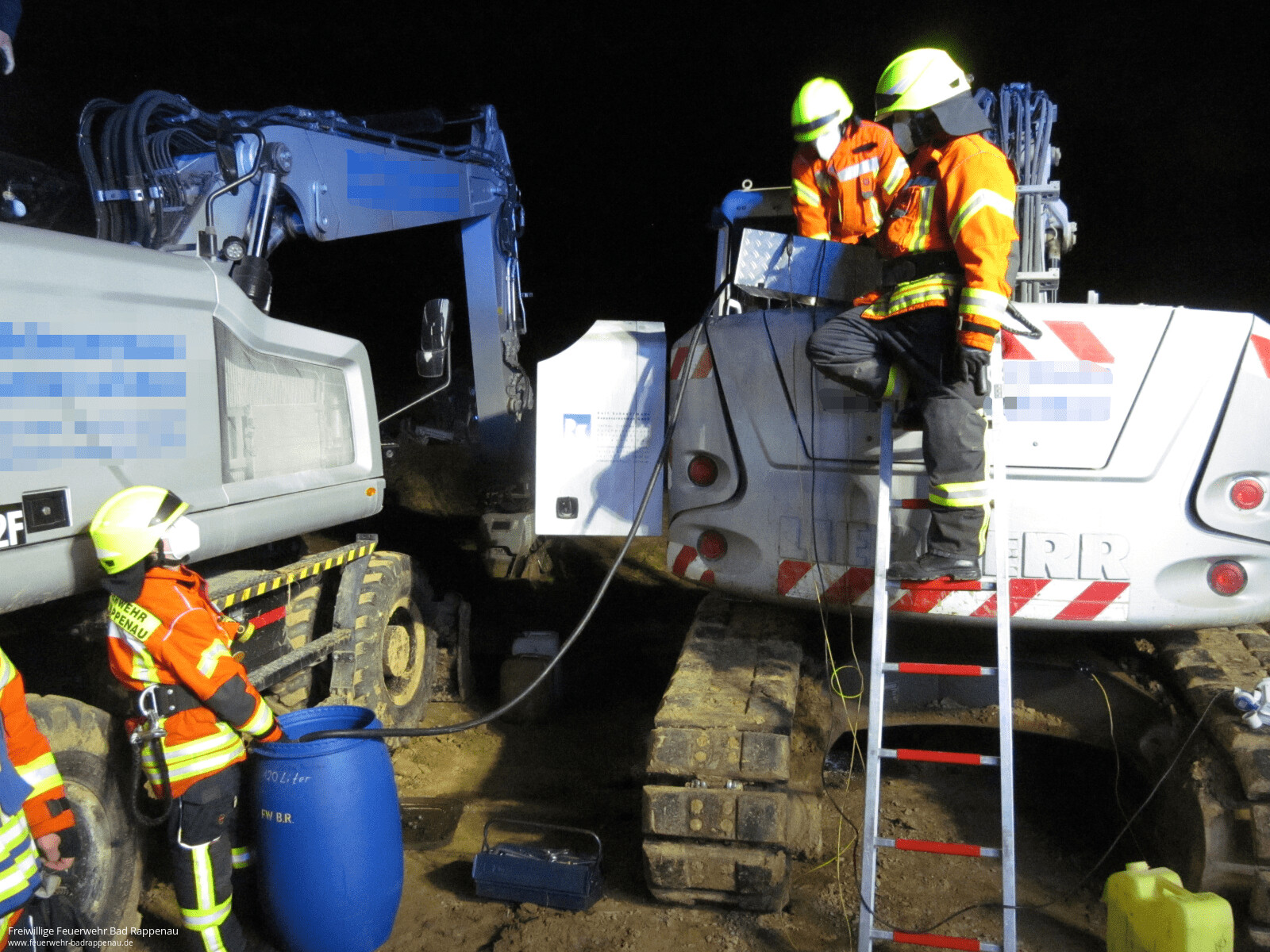 Mit dem Stichwort „Auslaufender Kraftstoff“ wurde die Abteilung Süd am 23.10. um 17:52 Uhr in die Verdistr. nach Bonfeld alarmiert. Aufgrund einer Undichtigkeit lief hier Dieselkraftstoff aus einem Bagger aus. Mit Unterstützung der nachalarmierten Abteilung Bad Rappenau wurde der Kraftstoff in einen weiteren Bagger umgepumpt und so ein Eindringen in das Erdreich verhindert.