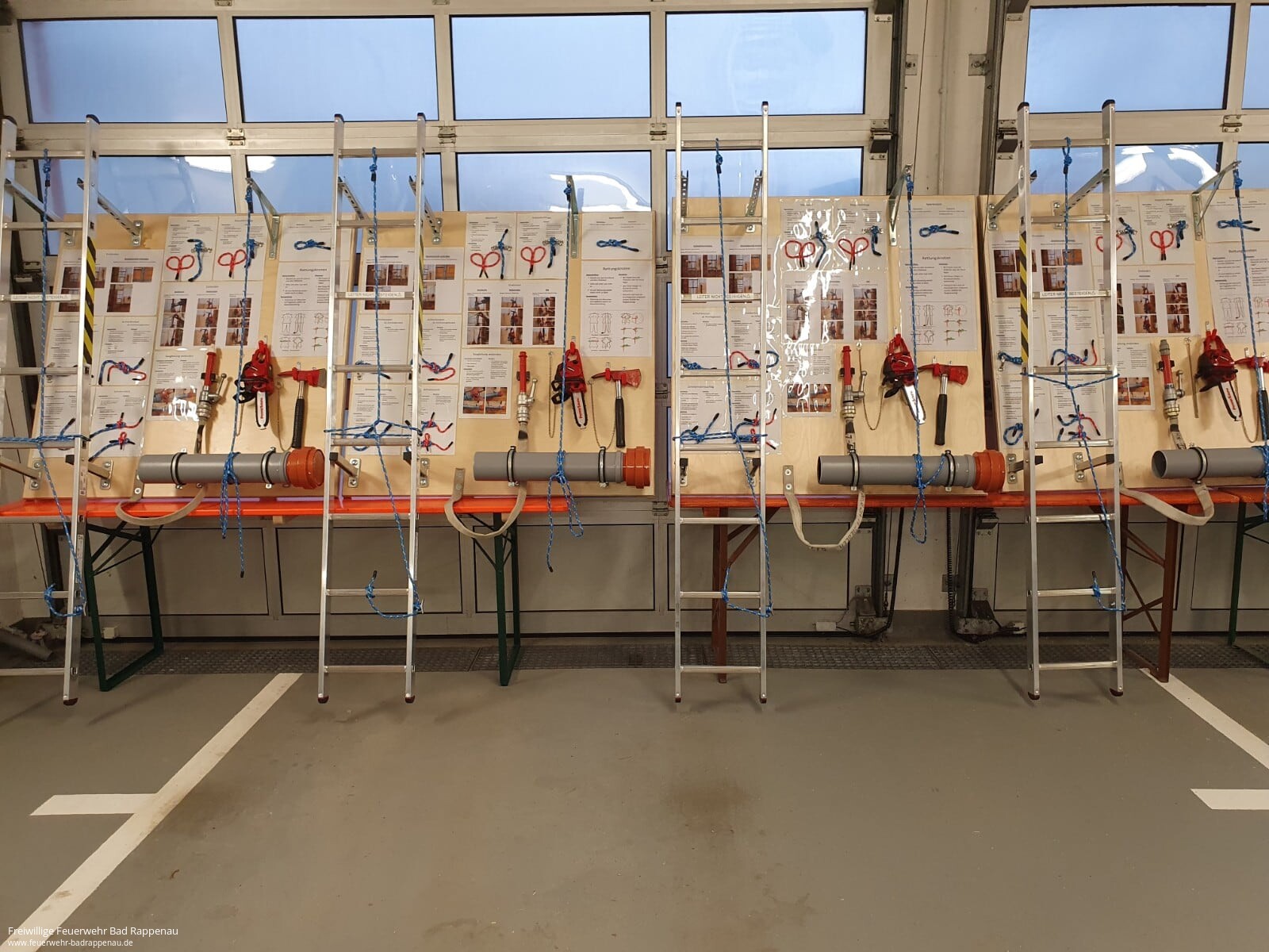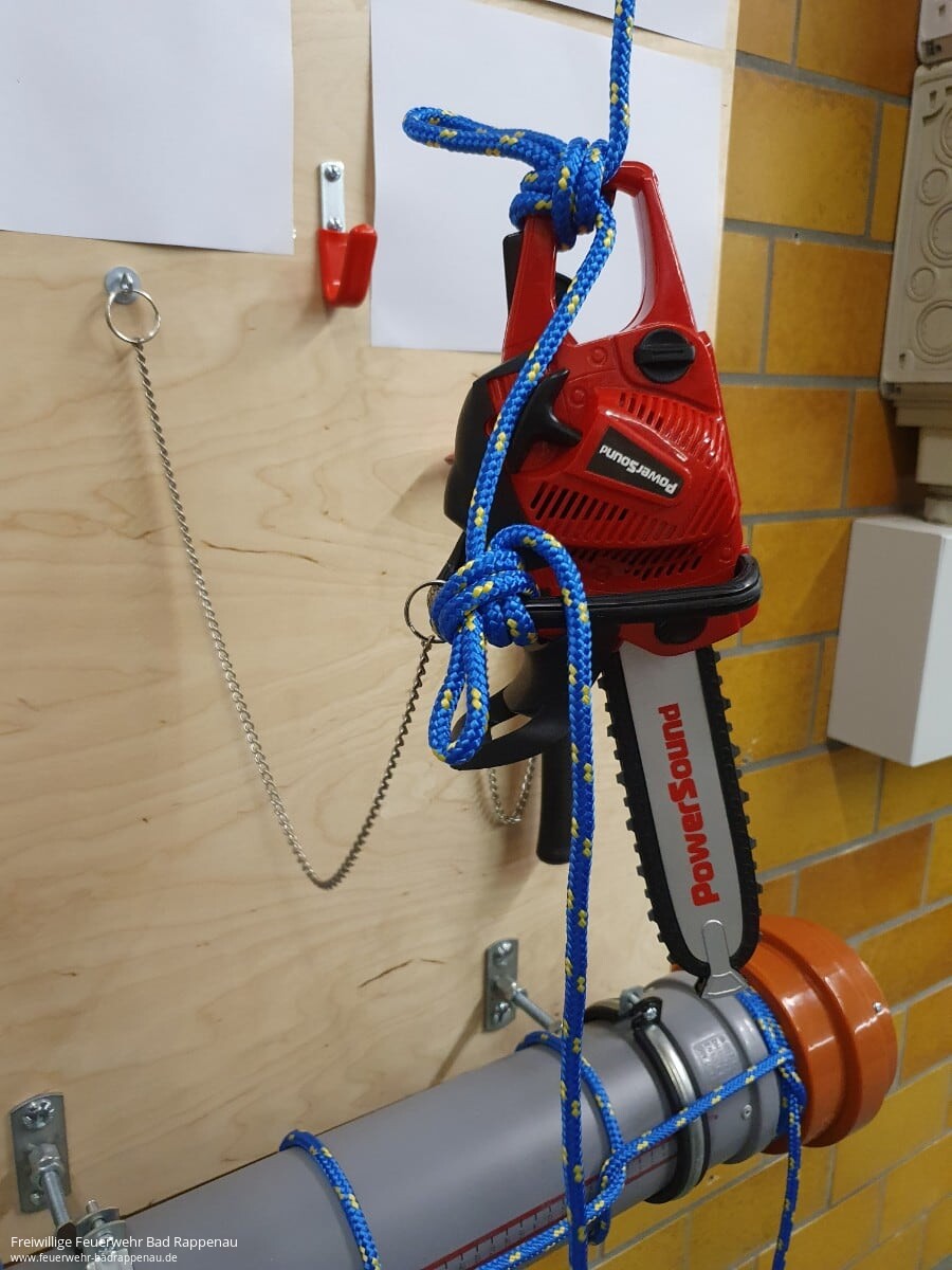 Knoten und Stiche – ein Thema das beim Training und den Einsätzen eine wichtige Rolle spielt, aber tatsächlich nicht das beliebteste Übungsthema ist. Um hier etwas mehr Schwung reinzubringen und vor allem die wichtige Praxisnähe zu bespielen kommt bei der Feuerwehr Bad Rappenau zukünftig eine Knotenübungswand zum Einsatz. Die Idee und den ersten Prototyp entwickelte Julian Kober aus der Abteilung Bad Rappenau. Nachdem dieser dann in der Abteilung in ersten Übungsdiensten für sehr gut befunden wurde, entschied der Ausschuss, die Knotenübungswand in allen Abteilungen der Feuerwehr Bad Rappenau zum Einsatz zu bringen, in denen die Platzverhältnisse ausreichend sind. Anschließend trafen sich an einem Samstag Monique Lilli, Michael Laumann, Patrick Wager, Julian Last und Max Elser aus den Abteilungen Süd, Wollenberg, Grombach und Heinsheim um unter der Anleitung von Julian Kober die Wände für ihre Abteilungen zu fertigen. An diesen können nun in den Abteilungen alle gängigen Feuerwehrknoten beübt werden – eine der Übungen, die u.a. während der Coronazeit etwas zu kurz kamen. Das Legen und Stechen von Knoten ist schlichtweg digital nicht möglich. In einem weiteren Schritt werden die einzelnen Knoten in Videos dargestellt. Diese Videos sind dann per QR-Code an den Wänden abrufbar und können so jederzeit in Erinnerung gerufen werden. Vielen Dank an Julian Kober für die tolle Idee und die Umsetzung – der Kameradin und den Kameraden vielen Dank für das Opfern eines ganzen Samstages um dieses Projekt zu realisieren.