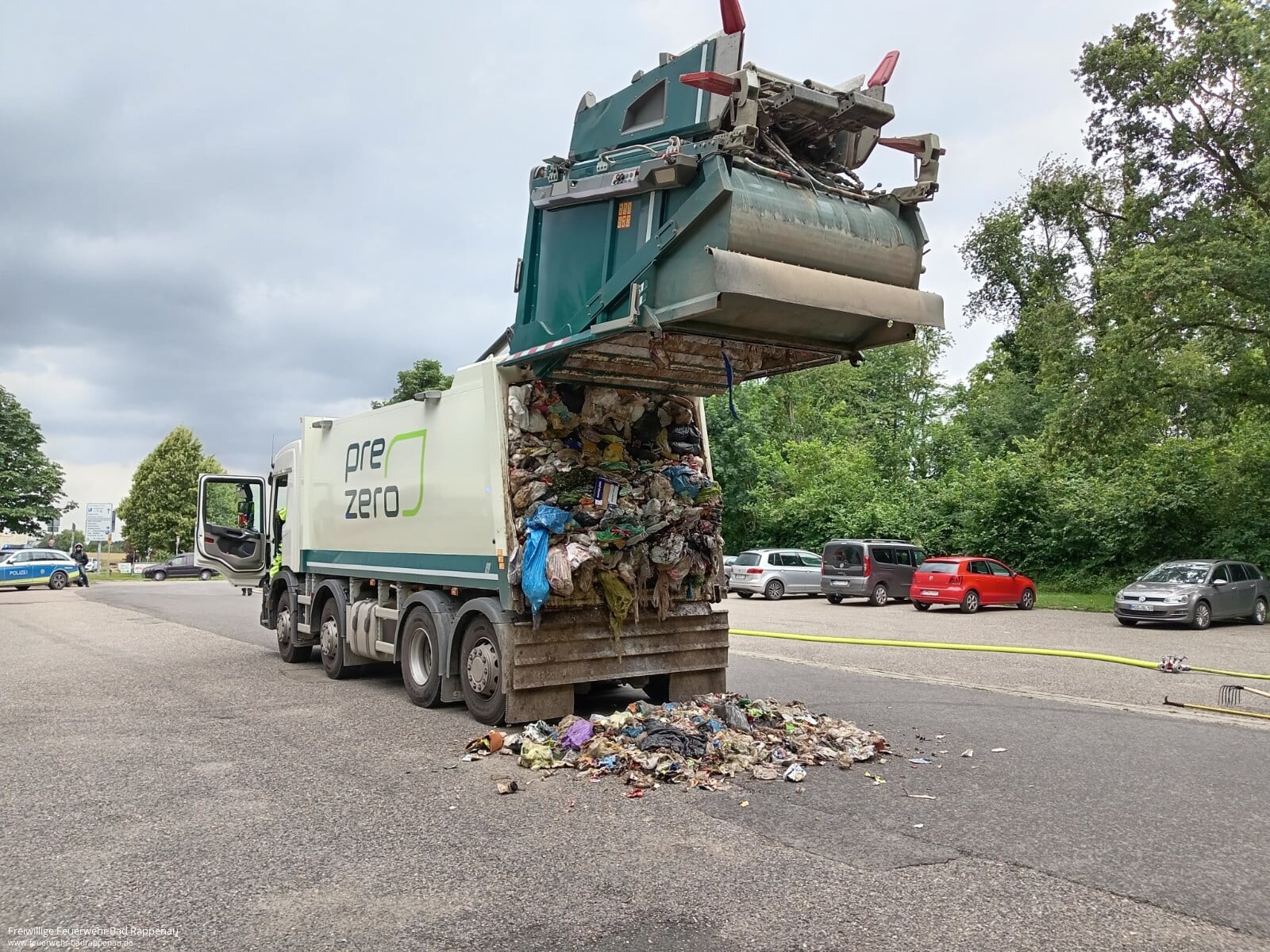 Die Feuerwehr Bad Rappenau wurde um 14:13 Uhr mit dem Alarmstichwort „LKW-Brand” zu einem Parkplatz in Bad Rappenau alarmiert. Nach der ersten Erkundung durch den Einsatzleiter stellte sich heraus, dass in einem Müllfahrzeug eine Batterie einen Schmorrbrand ausgelöst hatte. Nachdem der Müll aus dem Fahrzeug abgeladen wurde, konnte durch ausgiebiges Ablöschen ein größerer Brand verhindert werden. Der Müll wurde anschließend abgeholt.Wir waren mit fünf Fahrzeugen rund eine Stunde im Einsatz.