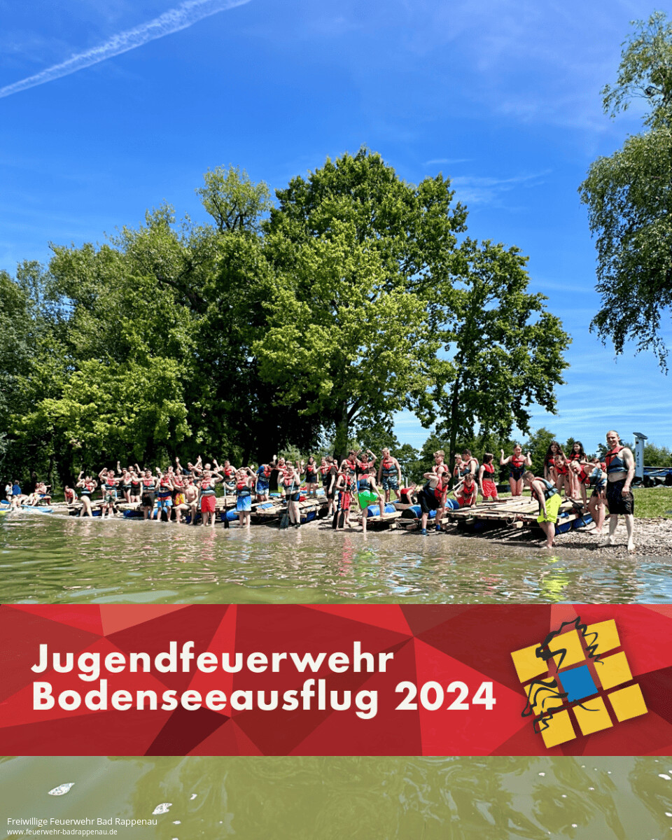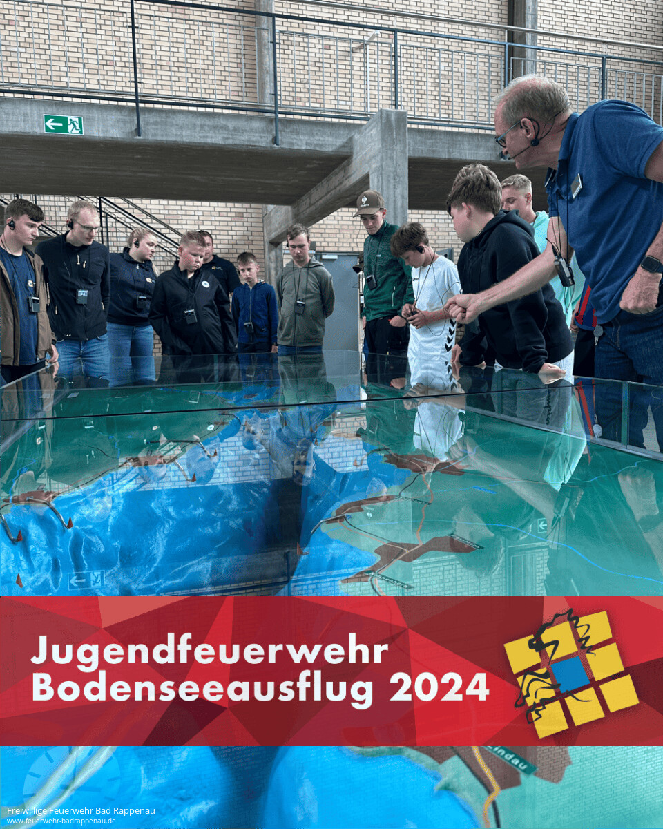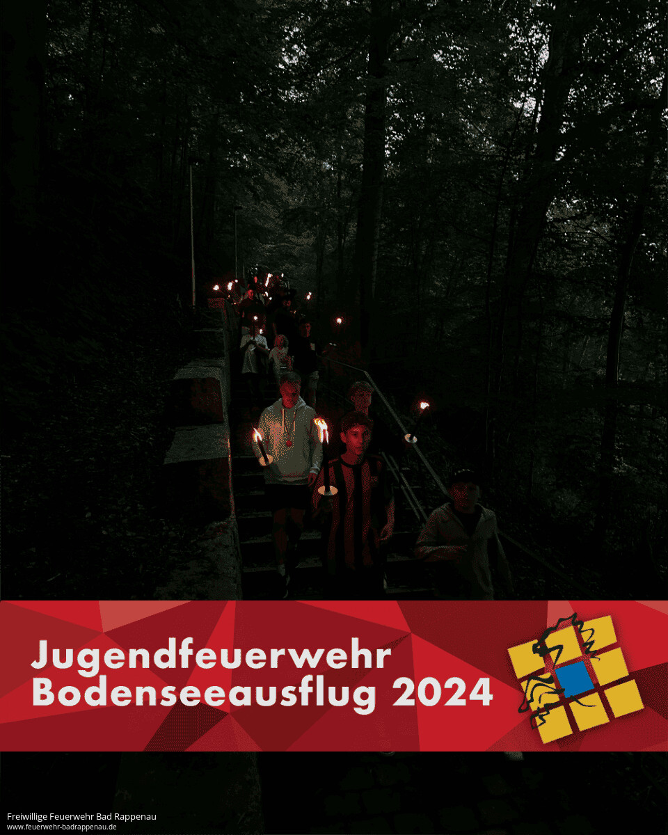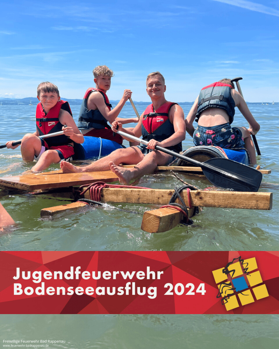 In diesem Jahr stand bei der Gesamtjugendfeuerwehr Bad Rappenau ein Zweitagesausflug zum Bodensee auf dem Programm. Insgesamt hatten sich 51 Jugendliche angemeldet. Am Samstag, den 13. Juli 2024, war es dann endlich so weit: Gemeinsam mit 14 Betreuern ging es los. Nachdem alles Gepäck und Zubehör für die verschiedenen Aktionen im Bus und in den drei MTWs der Abteilungen Babstadt, Grombach und Wollenberg verstaut war, ging es kurz nach 8 Uhr los auf die Autobahn in Richtung Bodensee.Als erstes stand ein Besuch beim Zweckverband Bodensee-Wasserversorgung auf dem Programm. Davor gab es noch eine kleine Stärkung mit selbst belegten Brötchen, frischem Gemüse und Obst. Gut gestärkt konnten alle Teilnehmenden aufgeteilt in zwei Gruppen der Führung durch das Wasserwerk Sipplinger Berg folgen. Während der Führung konnte live verfolgt werden, wie das Wasser aus dem Bodensee gefördert und in den verschiedenen Reinigungsstufen aufbereitet wird. Außerdem wurde gezeigt, wie das Wasser durch Baden-Württemberg u. a. teilweise bis nach Bad Rappenau und darüber hinaus transportiert wird. Hier haben wir gelernt, dass man kaum Verstärkerpumpen braucht und das Wasser hauptsächlich über ein leichtes Gefälle in der Leitung transportiert wird. Für die Jugendlichen war es ein besonderes Highlight, das frisch gefilterte Bodensee-Wasser direkt probieren zu können. Als Erinnerung an den Besuch gab es für alle Teilnehmer am Ende noch ein Glas.Nach der Führung durch das Wasserwerk sind wir dann mit dem Bus weiter nach Ravensburg zur Jugendherberge Veitsburg gefahren. Vor dem gemeinsamen Abendessen konnten sich die Jugendlichen bei einer Teamolympiade nochmal richtig austoben. Dabei mussten die Jugendlichen in verschiedenen Teams verschiedene Disziplinen meistern, zum Beispiel Rasen-Ski, Stiefel-Weitwurf, Sack-Hüpfen, horizontales Kistenstapeln und Wassertransport mit einem Schwamm über die Köpfe. Nach dem Abendessen und dem erfolgreichen Beziehen der Zimmer wurden noch die Siegerteams geehrt. Die Gewinnerinnen und Gewinner des ersten Platzes durften sich neben einer Medaille auch über einen Kinogutschein freuen.Kurz vor Anbruch der Dämmerung ging es dann mit dem letzten Programmpunkt des Tages los. Als nächstes stand eine Fackelwanderung auf dem Programm. Jeder konnte sich eine eigene Fackel nehmen und dann ging's gemeinsam auf eine spannende Route, die von zwei Betreuern vorab geplant wurde.Nach dem kurzen Aufwachspiel am nächsten Morgen ging's direkt zum gemeinsamen Frühstück. Dabei wurden auch die Lunchpakete für den Tag gepackt. Nachdem alle Zimmer wieder aufgeräumt waren, ging es zurück an den Bodensee. Hier startete für viele Teilnehmer das Highlight des gemeinsamen Ausflugs. In sechs Teams aufgeteilt, haben wir unter leichter Anleitung sechs Flöße gebaut, die nach einer Mittagspause auch schon zu Wasser gelassen wurden. Nach einem kleinen Wettkampf, bei dem es darum ging, welches Team zuerst einen bestimmten Punkt am Bodensee erreicht, hatten manche Teams nur noch das Ziel, ihr Floß über Wasser zu halten. Die anderen Teams waren aber schnell zur Stelle und haben geholfen, die Crew im untergehenden Floß aufzufangen. Es gibt Gerüchte, dass manche Teams nicht nur der Crew halfen, sondern auch Teile des untergehenden Floßes plünderten, um ihr eigenes Floß zu verstärken.Auch die schönste Aktion geht mal zu Ende. Gegen 14:30 Uhr hieß es deshalb, die Flöße aus dem Wasser zu ziehen und auseinanderzubauen. Um 15:30 Uhr konnte dann die Rückfahrt nach Bad Rappenau angetreten werden. Mit leichter Verspätung konnten alle Jugendlichen gegen 19:30 Uhr von ihren Eltern abgeholt werden.Ein großes Dankeschön geht an alle Betreuer, die uns bei der Planung und Durchführung des Ausflugs tatkräftig unterstützt haben. Ohne sie wäre so ein toller Ausflug nicht möglich gewesen. Vielen Dank auch an Herrn Freygang vom Zweckverband Wasserversorgung Mühlbach, der durch eine Kooperation uns bei der Ermöglichung des Ausflugs unterstützt hat.
