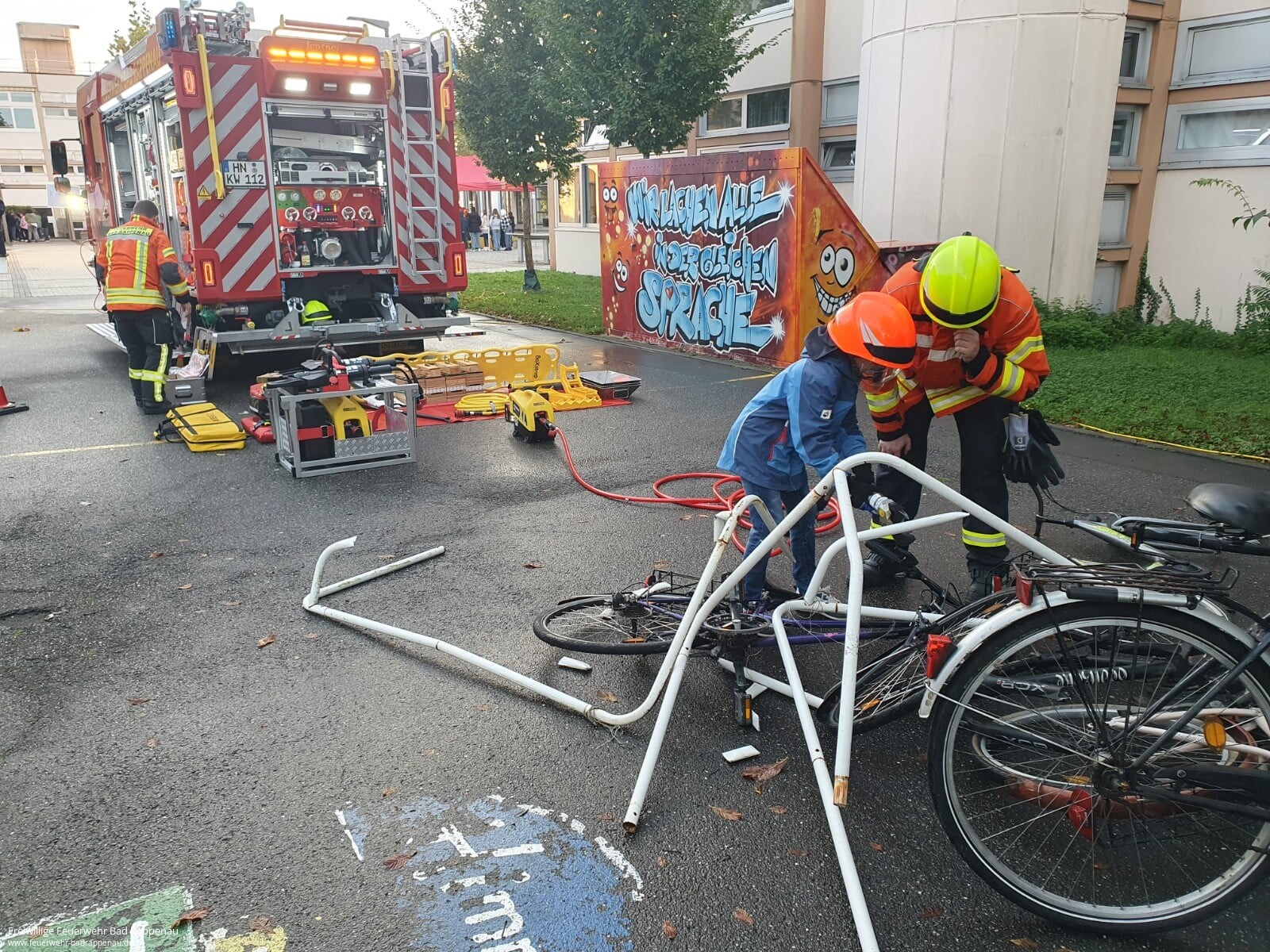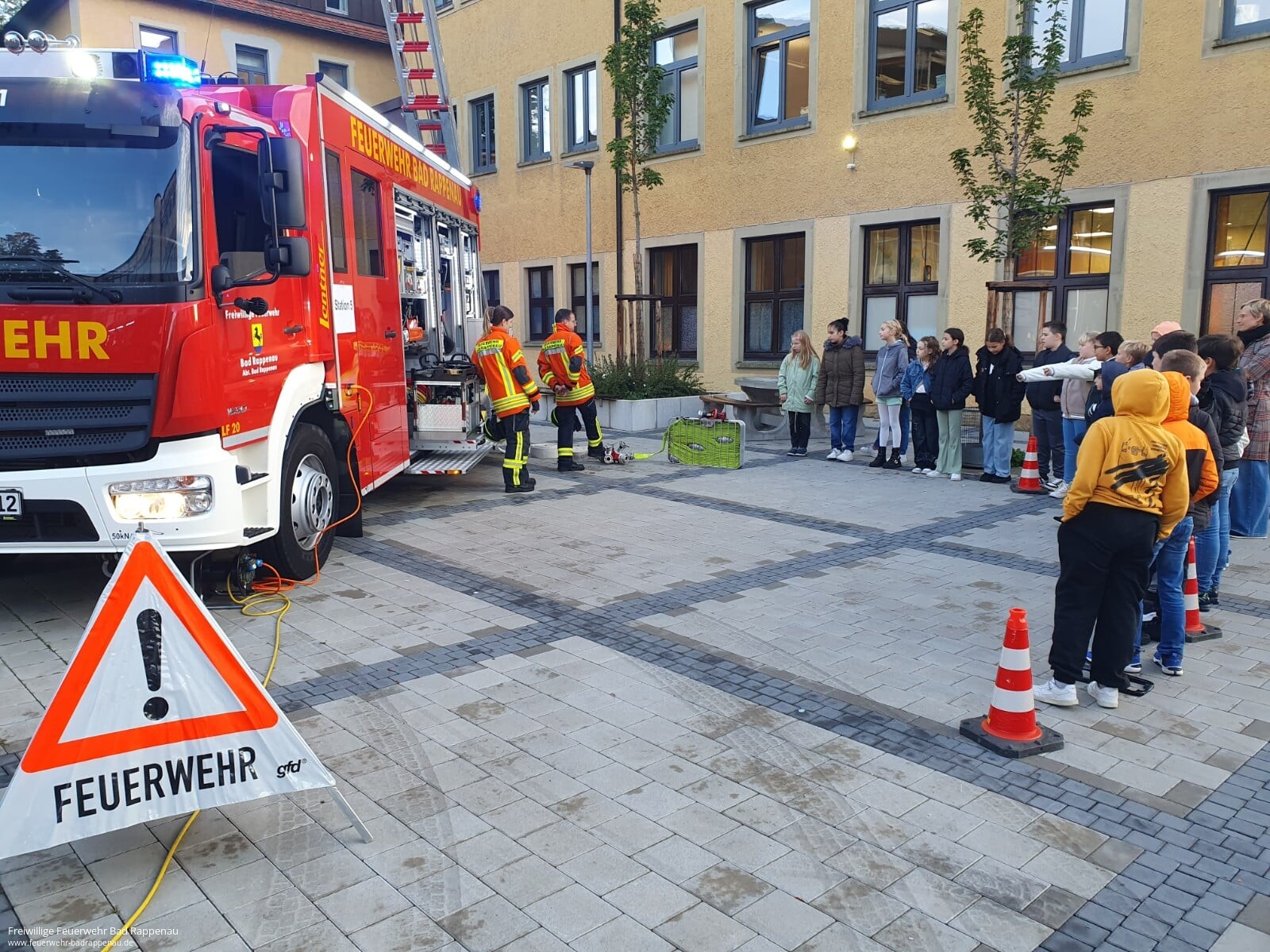 Im Praxisteil auf dem Schulhof erhielten die Schülerinnen und Schüler Einblicke in die Arbeit der Feuerwehr und ihre Geräte, übten Erste Hilfe und Hochwasserschutz und durften ein Löschgruppenfahrzeug erkunden. Ein besonderes Highlight war die Möglichkeit, mit hydraulischem Rettungsgerät Schrott zu zerschneiden. Die Aktionstage verfolgten dabei das weitere Ziel, das Wissen und die Verantwortung für den Bevölkerungsschutz in die Familien zu tragen, die Bekanntheit der Hilfsorganisationen zu stärken und die Bedeutung des Ehrenamts hervorzuheben.