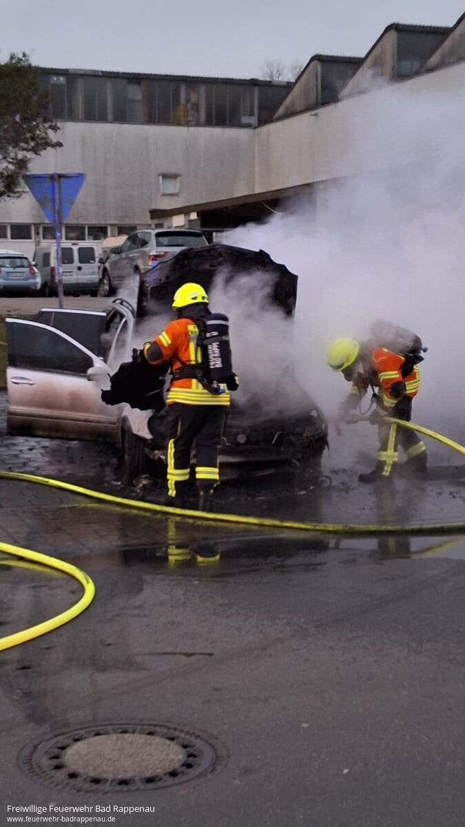 Mit dem Stichwort „Rauchentwicklung Wohngebäude“ wurden wir am Freitagmorgen in die Raiffeisenstraße alarmiert. Vor Ort stellten wir eine starke Rauchentwicklung fest, die von einem brennenden Fahrzeug ausging. Der Brand konnte, auch aufgrund der kurzen Anfahrtszeit, rasch unter Kontrolle gebracht und anschließend gelöscht werden. Für die Löscharbeiten war die Raiffeisenstraße kurzzeitig gesperrt.Wir waren mit 4 Fahrzeugen etwas mehr als eine halbe Stunde im Einsatz.