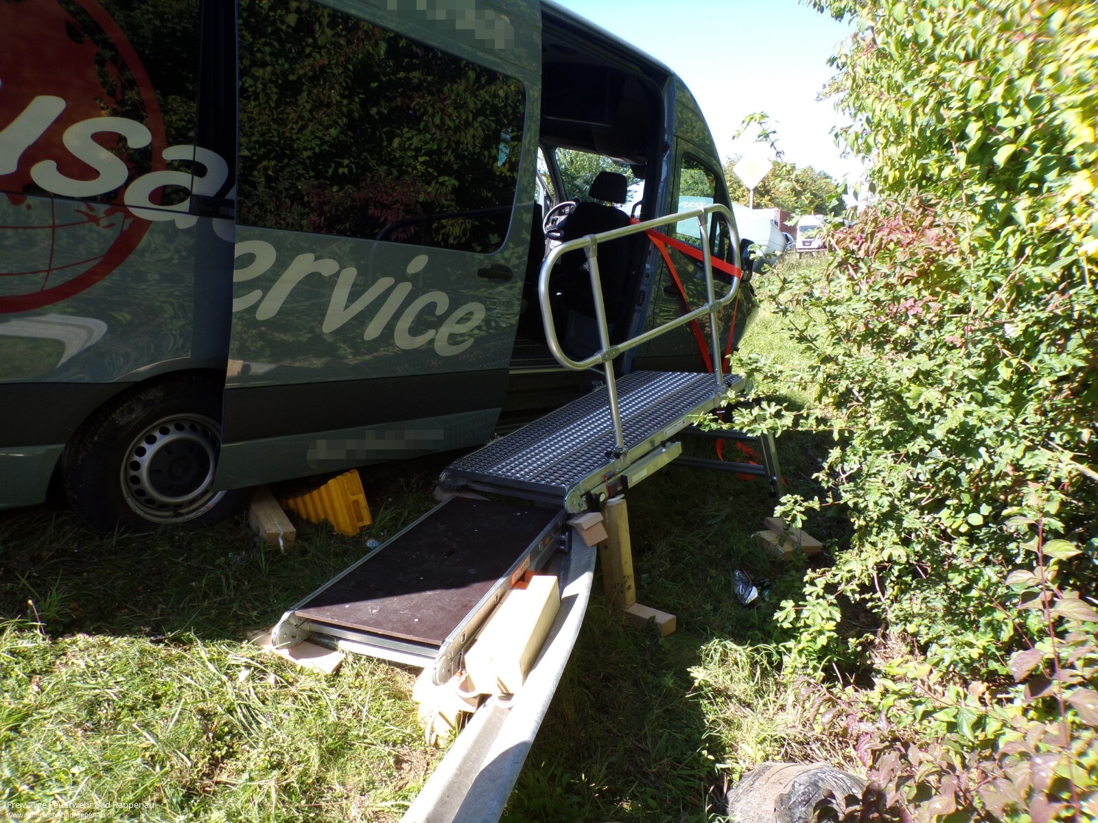Die Insassen der beiden Pkw konnten ihre Fahrzeuge selbstständig verlassen und waren lediglich leicht verletzt. Im Kleinbus befanden sich sechs ältere Personen, die unverletzt blieben. Da der Bus jedoch über der Leitplanke in einem Straßengraben zum Stehen gekommen war, war ein sicheres Aussteigen zunächst nicht möglich.