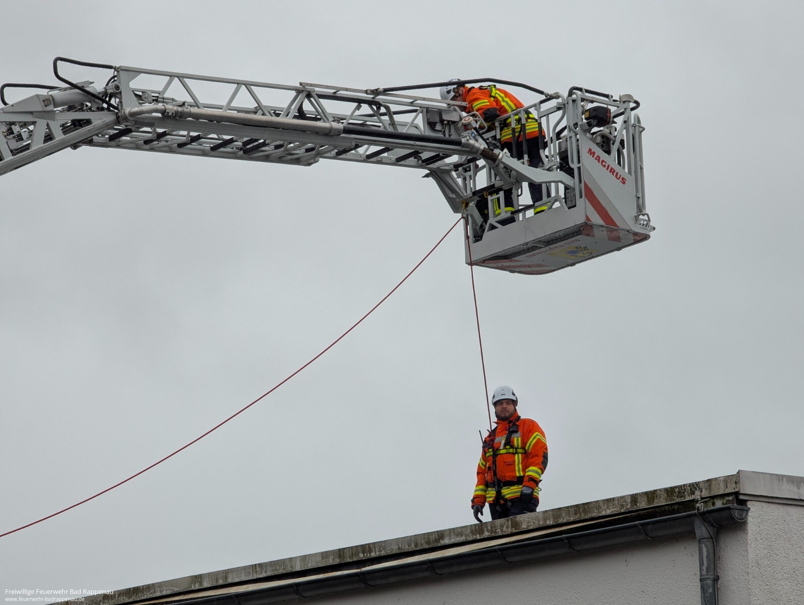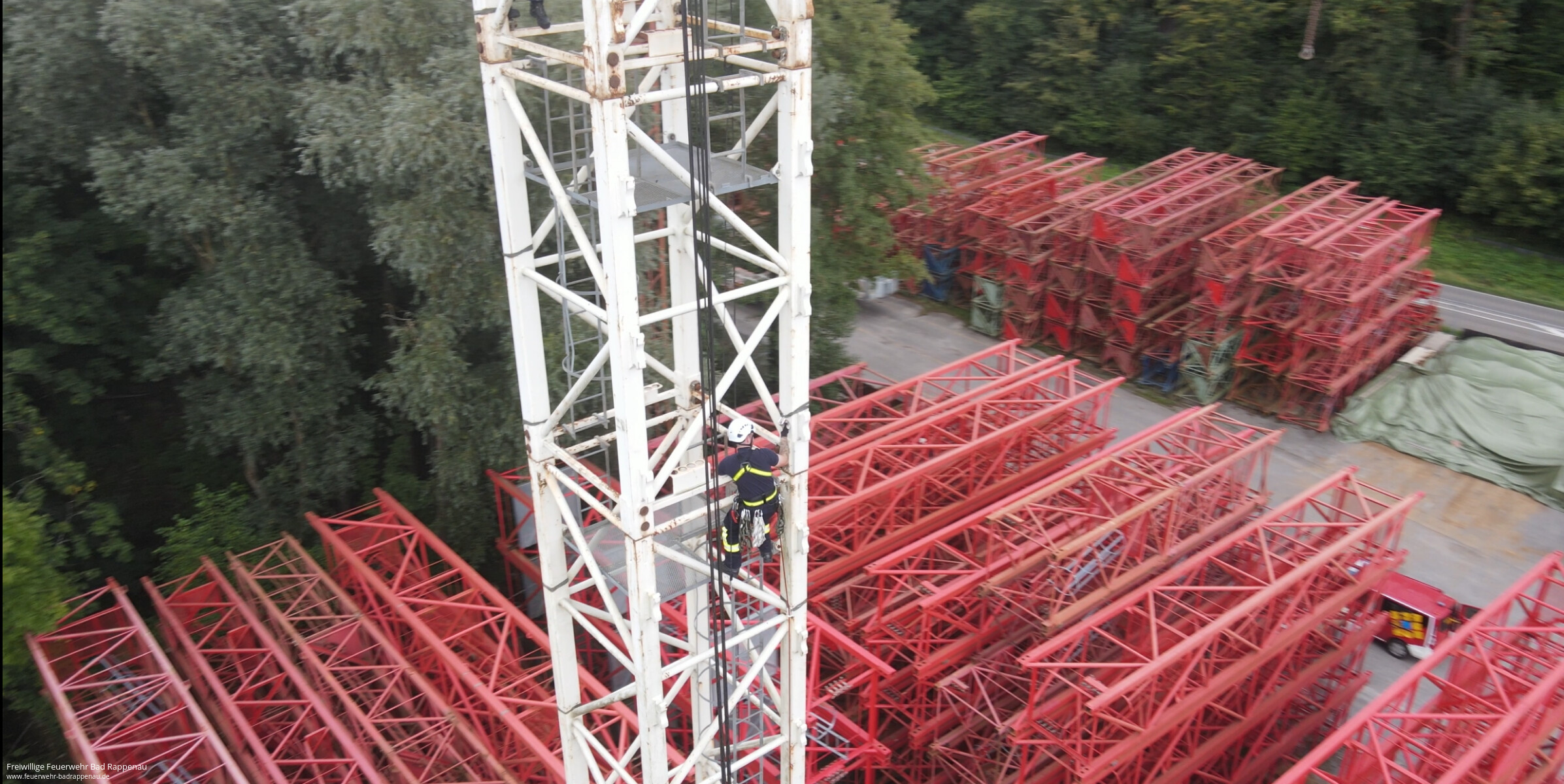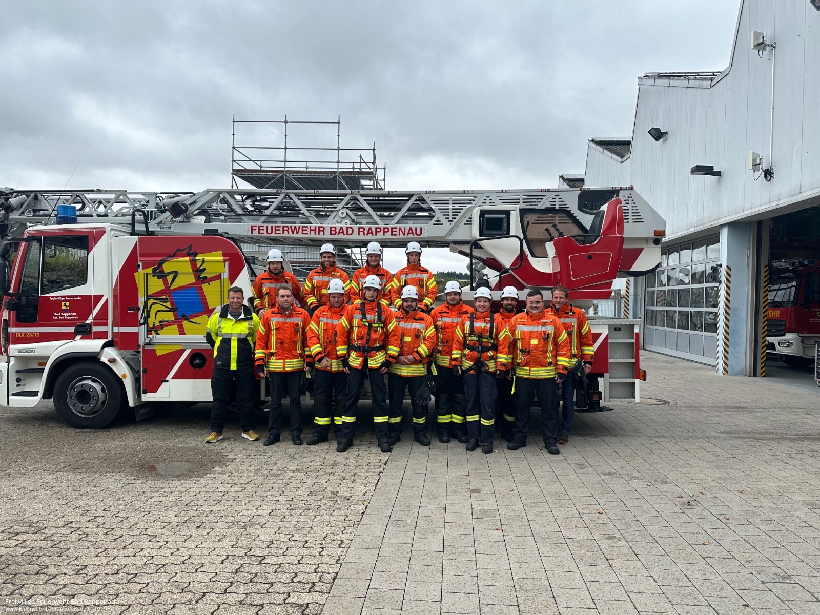 Vom 20. bis 22. September fand bei der Freiwilligen Feuerwehr Bad Rappenau ein Lehrgang zur Anwendung des Gerätesatzes Absturzsicherung statt. Durchgeführt wurde die Ausbildung von der Firma SeilTechnikUlm GmbH.Am ersten Tag stand die theoretische Einführung im Mittelpunkt. Nach Begrüßung und Vorstellung wurden die Unfallverhütungsvorschriften sowie die Unterschiede zwischen Absturzsicherung, einfacher Rettung aus Höhen und Tiefen und spezieller Rettung aus Höhen und Tiefen erläutert. Ebenso wurden Einsatzmöglichkeiten wie Halten, Rückhalten, Auffangen und Selbstretten behandelt. Auch besondere Gefahren wie das Hängetrauma wurden angesprochen. Am Nachmittag folgten praktische Übungen zu Knoten und geeigneten Anschlagpunkten.Der zweite Tag war geprägt von Praxiseinsätzen. Mit Unterstützung der Drehleiter wurden auf dem Dach der Gemeinschaftsverbundschule Bad Rappenau Sicherungsmaßnahmen und das Arbeiten an absturzgefährdeten Kanten trainiert. Anschließend stellte die Firma Rolf Mayer GmbH ihr Betriebsgelände zur Verfügung. Dort konnten die Teilnehmenden am Baukran das richtige Vorsteigen sowie das Einrichten von Zwischensicherungen üben.Am Montag ermöglichte die Firma BRAUN GmbH & Co. KG Stuhlfabrik trotz regnerischem Wetter das Training in einer Halle. Hier konnte mit der Drehleiter das Arbeiten auf einem Flachdach realitätsnah nachgestellt werden. Nach einer weiteren Übungseinheit unter freiem Himmel schloss der Lehrgang mit einer kleinen Theorieprüfung ab, die alle Teilnehmenden erfolgreich bestanden.Der Lehrgang war ein wichtiger Schritt für die im Aufbau befindliche Einheit für einfache Rettung aus Höhen und Tiefen (ERHT) der Feuerwehr Bad Rappenau. Die teilnehmenden Kameradinnen und Kameraden konnten wertvolle Erfahrungen sammeln und ihre Kenntnisse im Umgang mit dem Gerätesatz vertiefen.Ein besonderer Dank gilt der Firma SeilTechnikUlm GmbH für die fachkundige Durchführung und den super Trainer, der Firma Rolf Mayer GmbH sowie der Firma BRAUN GmbH & Co. KG Stuhlfabrik für die Bereitstellung ihrer Übungsorte.