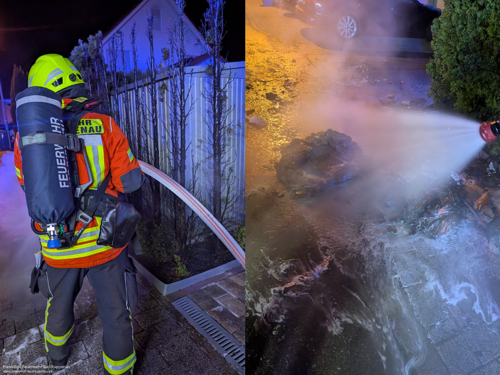 Mehrere Einsätze zum Jahresbeginn 2026Der Jahreswechsel hielt die Feuerwehr Bad Rappenau bereits mehrfach auf Trab. In den ersten Stunden des neuen Jahres kam es zu mehreren Einsätzen, die überwiegend im Zusammenhang mit Silvesterfeuerwerk standen.Bereits kurz nach Mitternacht brannte in einem Neubaugebiet in Babstadt eine blaue Papiermülltonne, vermutlich ausgelöst durch unsachgemäß entsorgtes Feuerwerk. Wenig später entdeckte der Einsatzleiter auf der Rückfahrt von einem Einsatz brennende Überreste einer Feuerwerksbatterie am Straßenrand, die umgehend abgelöscht wurden.Gegen 01:32 Uhr kam es in der Johann-Strauß-Straße zu einem weiteren Kleinbrand. Überreste von Feuerwerkskörpern hatten dort zwei Papiermülltonnen in Brand gesetzt. Das Feuer griff auf angrenzende Thuja-Hecken über und drohte auf ein Wohnhaus überzugreifen. Durch das schnelle und beherzte Eingreifen der Einsatzkräfte konnte der Brand rechtzeitig eingedämmt und vollständig gelöscht werden.Am späten Vormittag wurde die Feuerwehr Bad Rappenau schließlich zu einer ausgelösten Brandmeldeanlage in einer Kurklinik alarmiert. Nach Kontrolle des betroffenen Bereichs konnte als Auslösegrund Wasserdampf festgestellt werden. Ein weiteres Eingreifen war nicht erforderlich.Die Einsätze zeigen erneut, wie wichtig der sachgerechte Umgang mit Feuerwerksresten sowie ein aufmerksamer Blick auf die Umgebung sind, um größere Schäden zu verhindern.