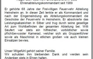 Nachruf Ehrenabteilungskommandant Willi Seufert – Abt. Heinsheim