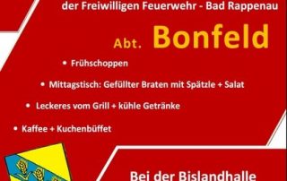 Datum & Uhrzeit: 2014-06-29 Autor: Axel Klumbach, Feuerwehr Bad Rappenau Die Abteilung Bonfeld der Freiwilligen Feuerwehr veranstalten wie alljährlich das traditionelle Grillfest am 06.07.2014. Für ein unterhaltsames Programm ist gesorgt - ein vielfältiges Angebot an Speisen + Getränken steht für Sie als Gäste