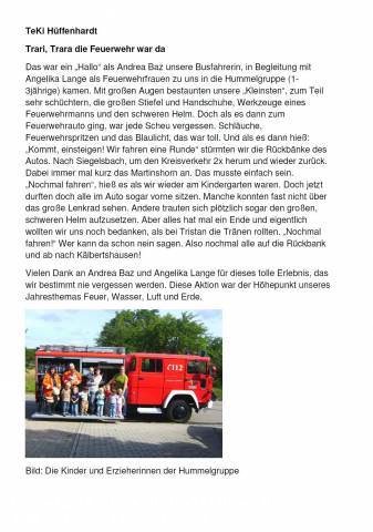 Datum & Uhrzeit: 2012-09-15 Autor: Axel Klumbach, Feuerwehr Bad Rappenau Artikel der Tageseinrichtung durch Frau Daniela Puda